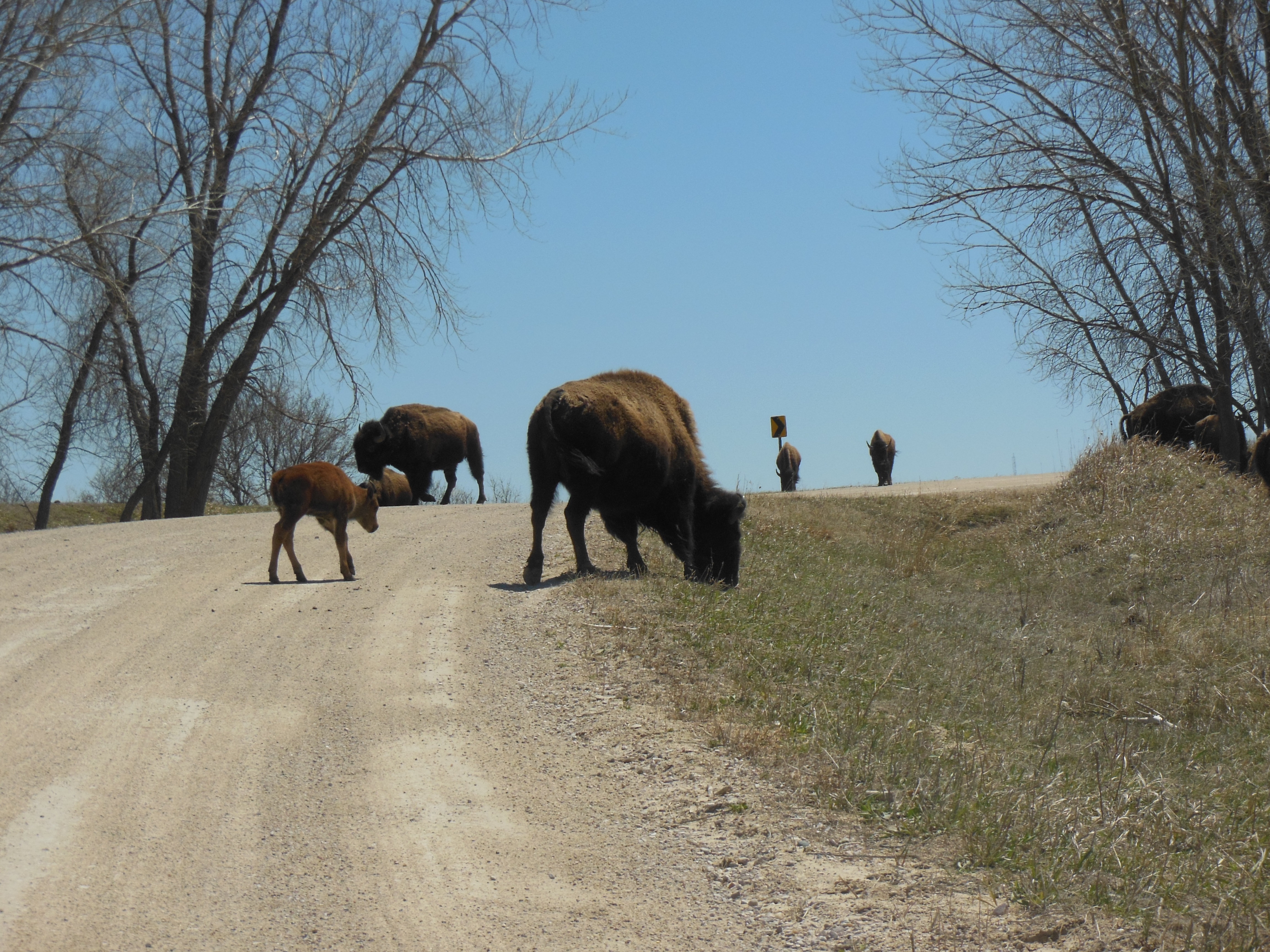 The bison numbered about 25 and blocked the road so we let them go first out of consideration to the young ones and to the size of the old ones.