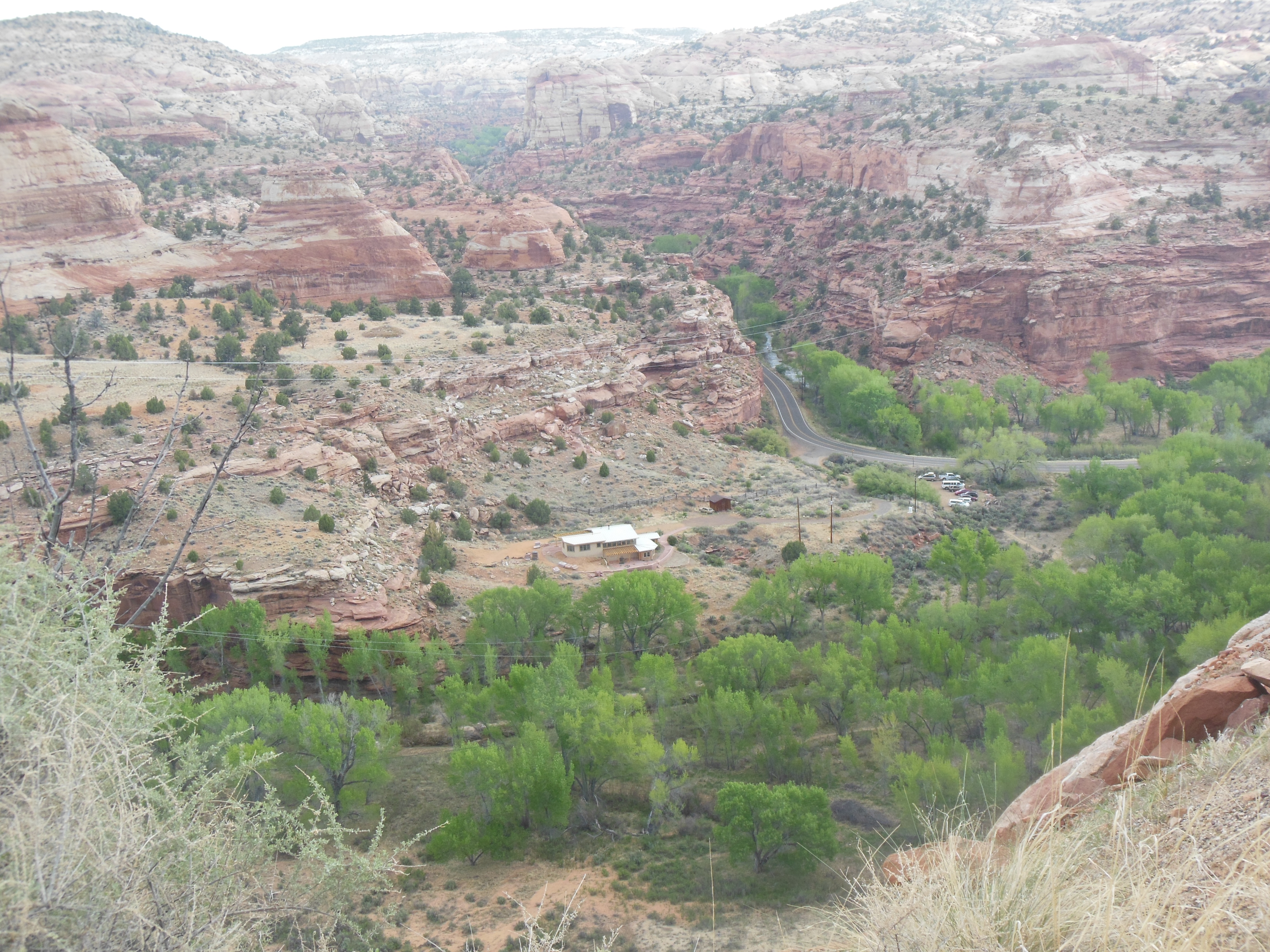 Monday May 6 was a full day of Capitol Reef. Breakfast was a small box of Cheerios from one of the previous lodging sites which offered continental breakfast-plus milk and juice purchased in nearby Bicknell.