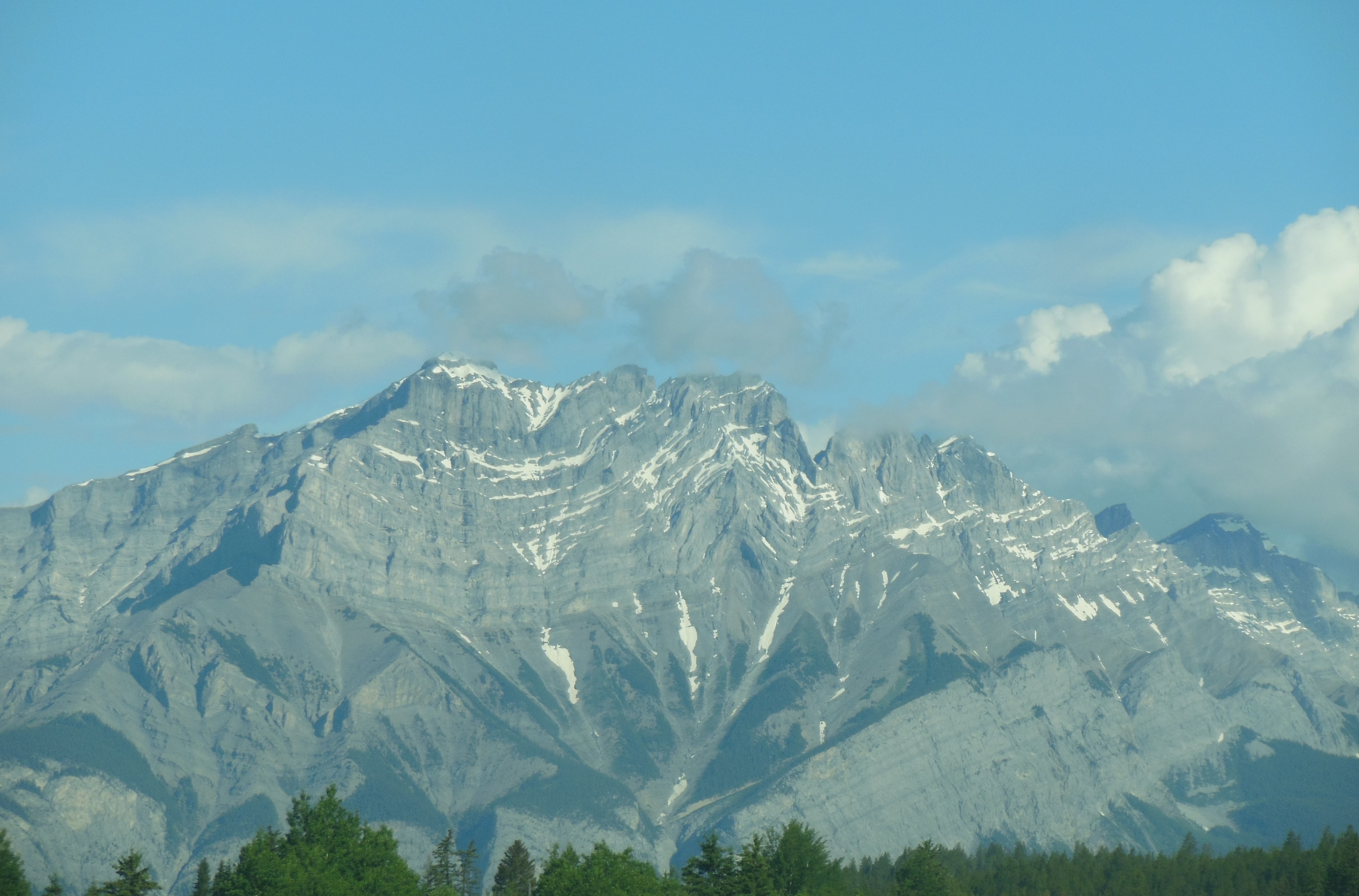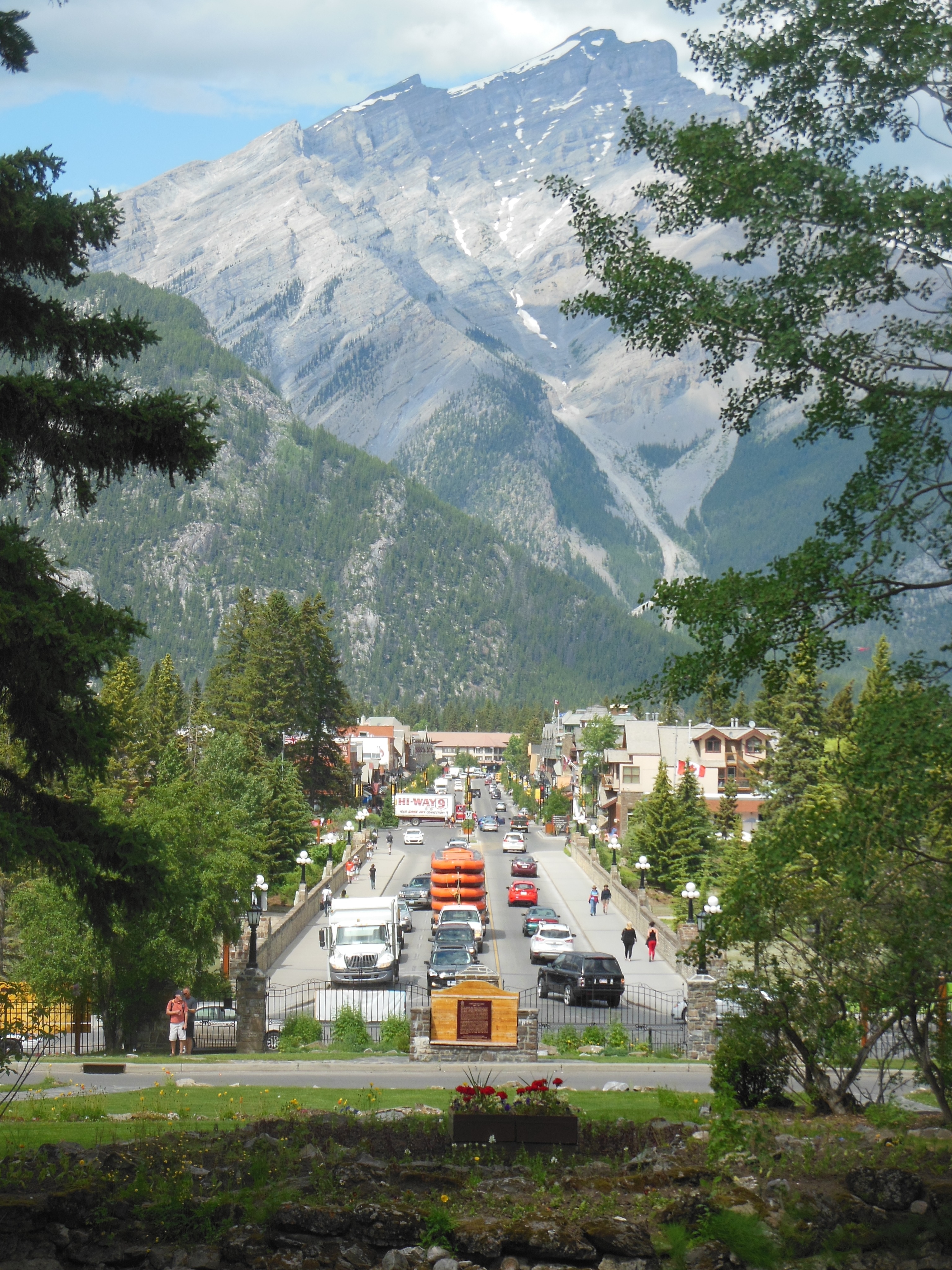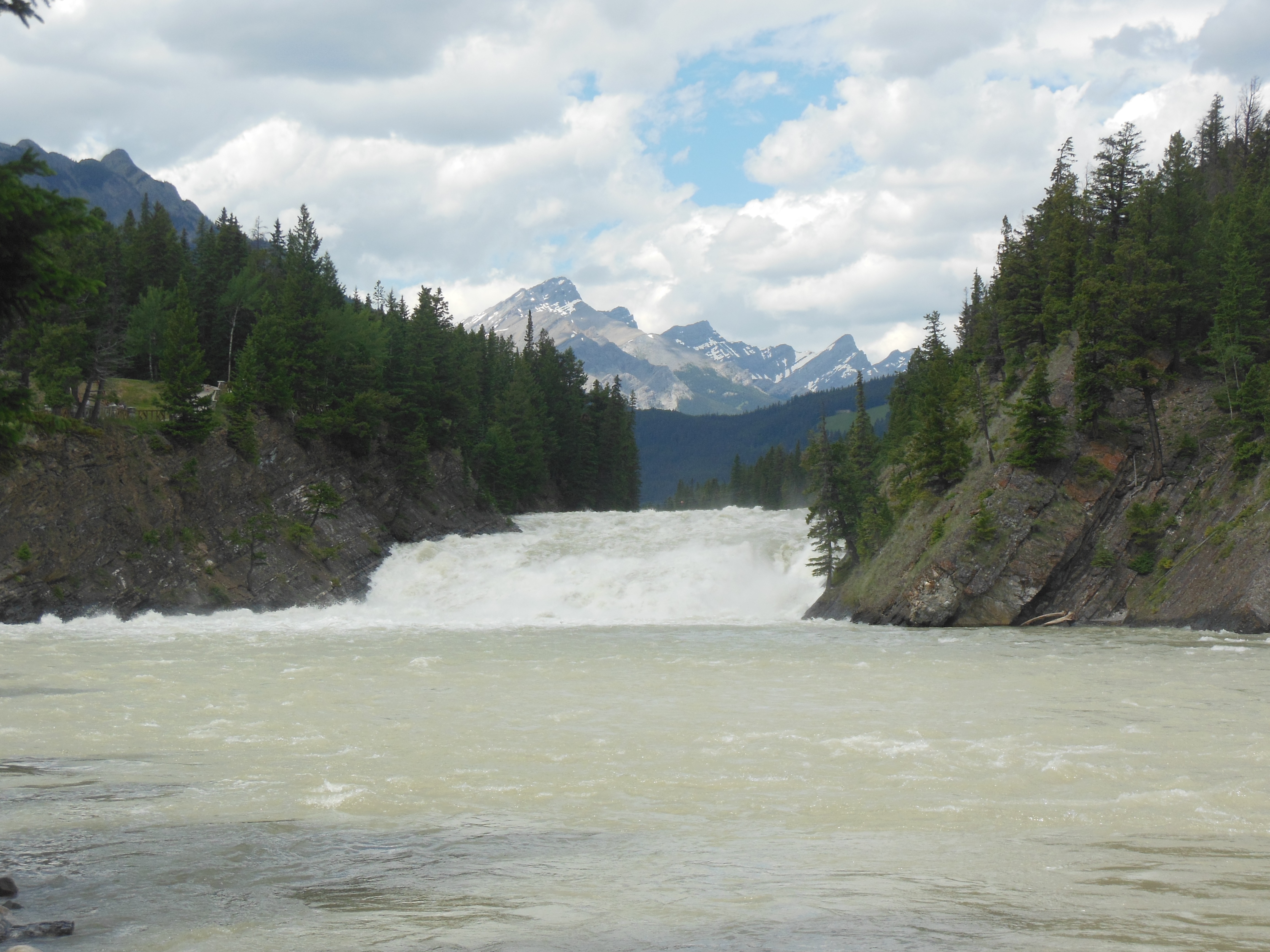 July 7, Sunday, was our travel day. We left Canmore after Church and took the Bow Valley Trail to Calgary. This road had been closed until a few days ago. It follows the Bow River and we saw numerous locations where the road had been repaired. It is considered an alternate, scenic route to Calgary.