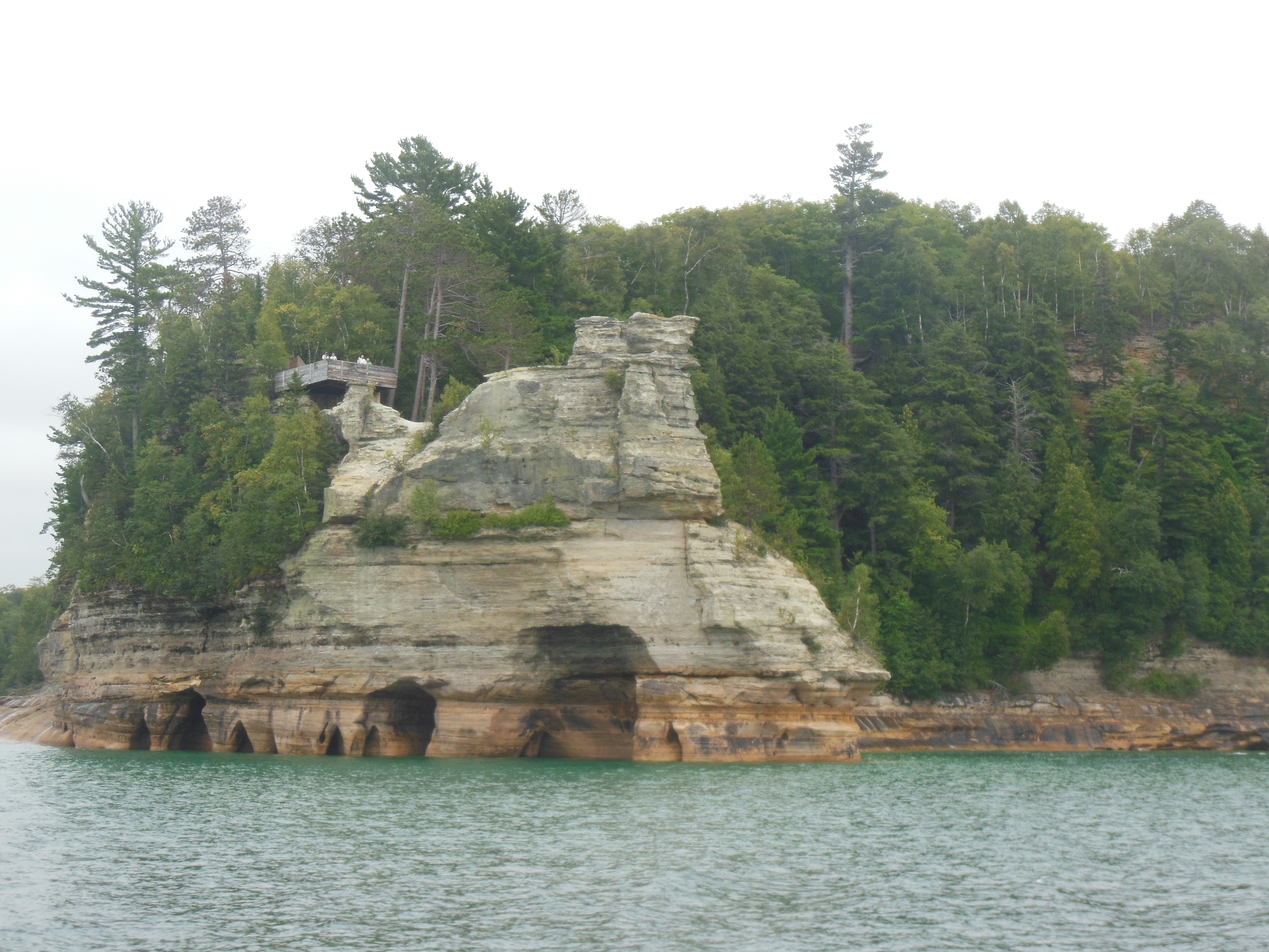 We stopped at Lake of the Clouds scenic area at the eastern end of the Porkies where the rise in elevation provides a view of a long, shallow lake in the mountains. Leaves have not yet attained their fall colors but the scenery is striking none the less.