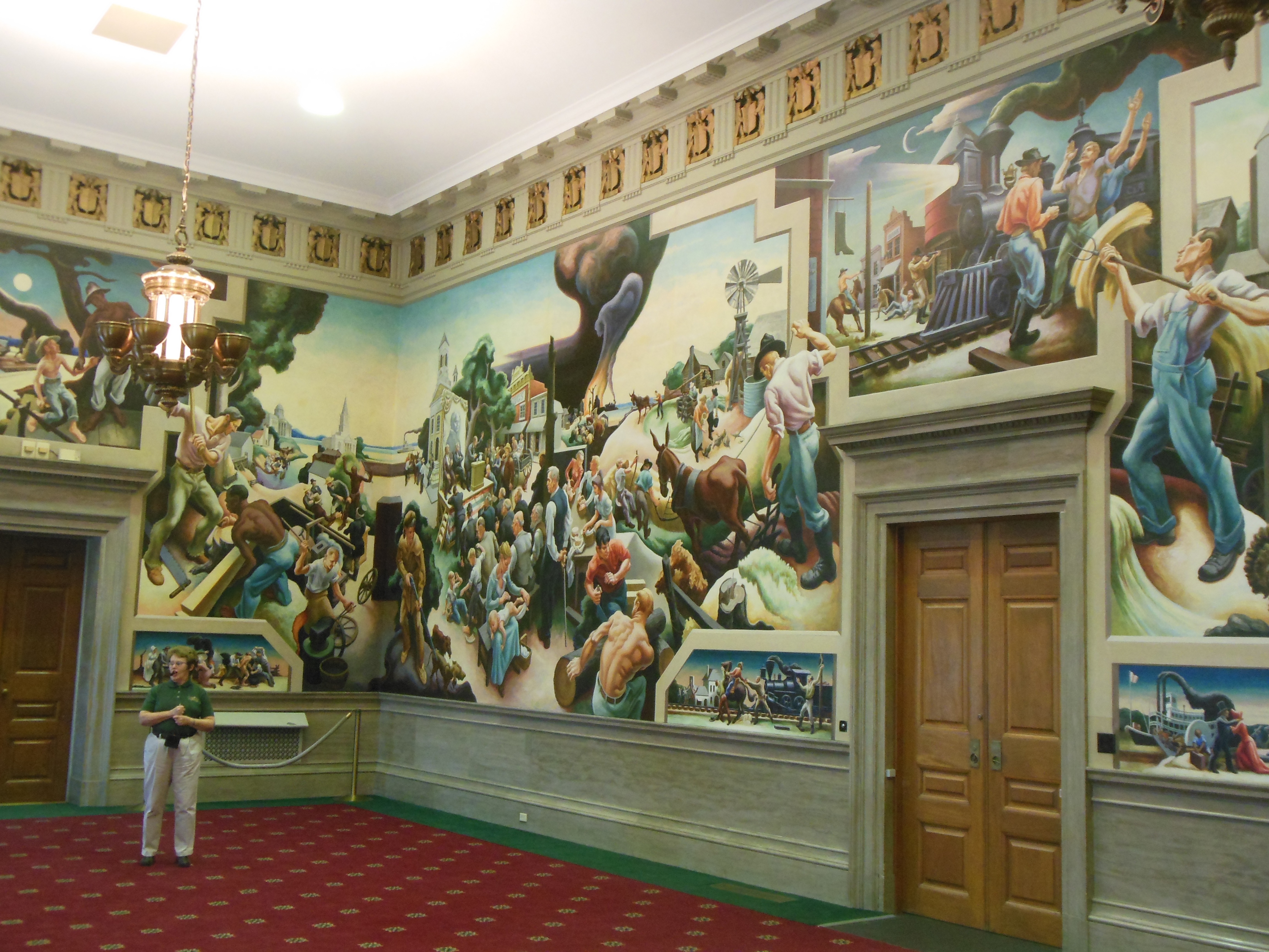 Then it was on to downtown Bentonville. We visited the Sam Walton Museum housed in the first Walton’s 5 and 10 store. (He had managed Ben Franklin stores prior to this.) Sam’s life of beginning humbly but being driven to succeed and provide goods at rock bottom prices so people could buy more and live on less is repeated throughout the museum. The growth of Walmart (first store in Rogers, AR in 1962) is documented. The focus on being people driven is highlighted along with recent efforts for environmental and charitable actions. Whatever your thoughts about Walmart, it is a remarkable story.
