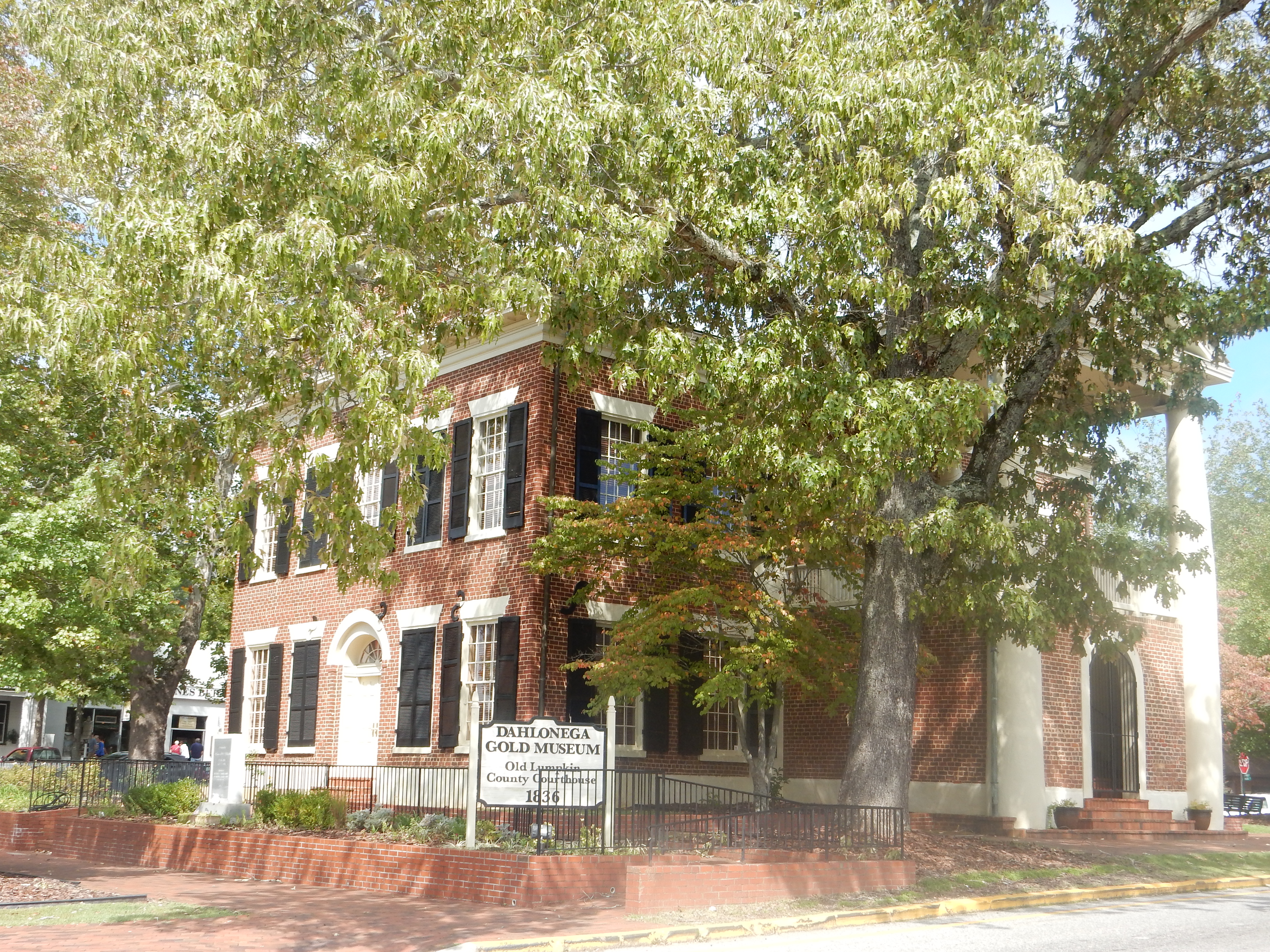 Why Dahlonega?? Well, this portion of Georgia was the area of the first gold rush in the United States. Beginning in 1828, gold was found here along a ridge of mountains stretching from the North Carolina border to the Alabama border. Dahlonega was the focal point, over 200 mines were located in this area. The U.S. mint actually had a branch mint here until the start of the Civil War. Men came from all over the existing U.S.; many left here for California when gold was found at Sutters Mill in 1848.