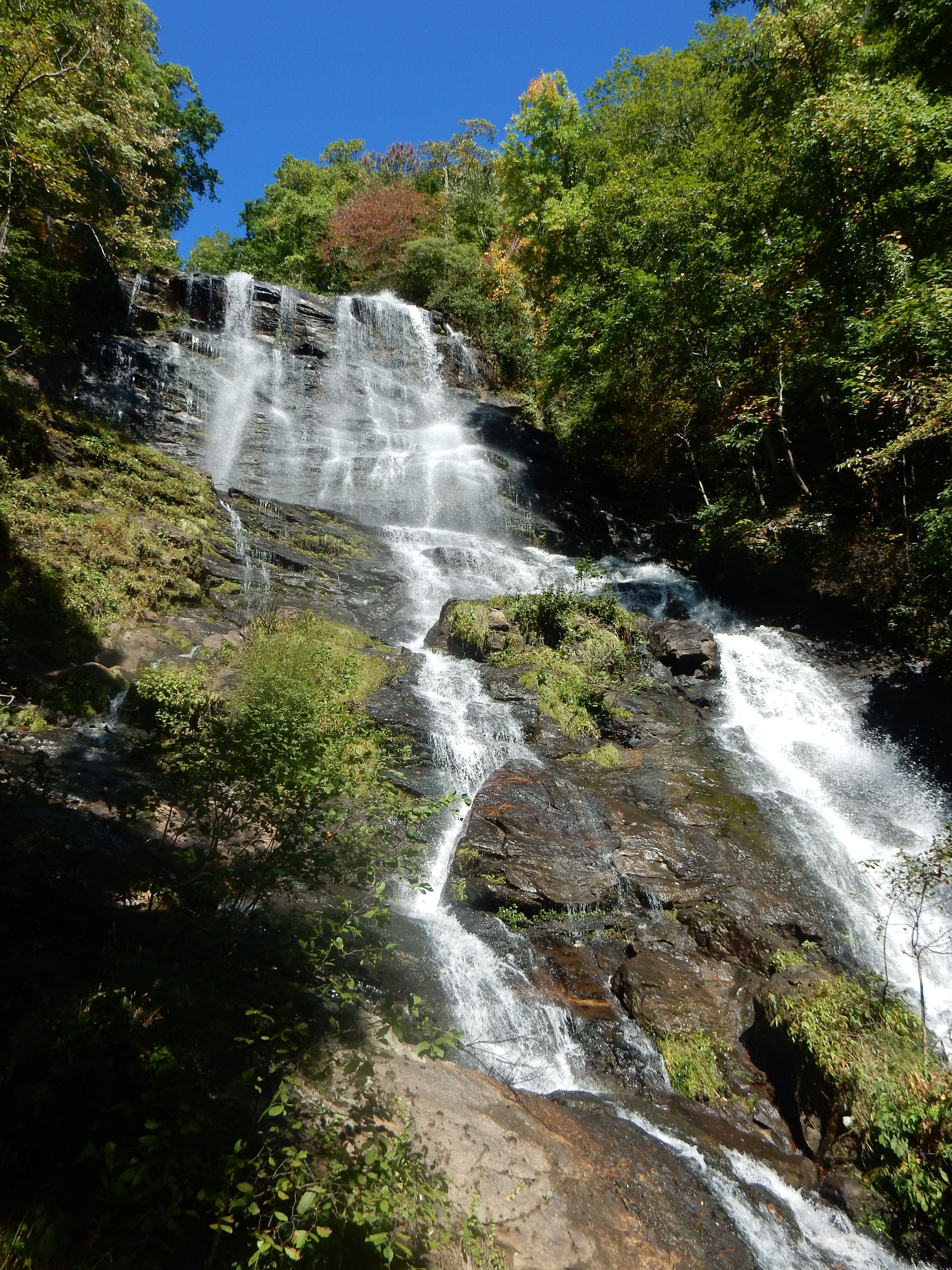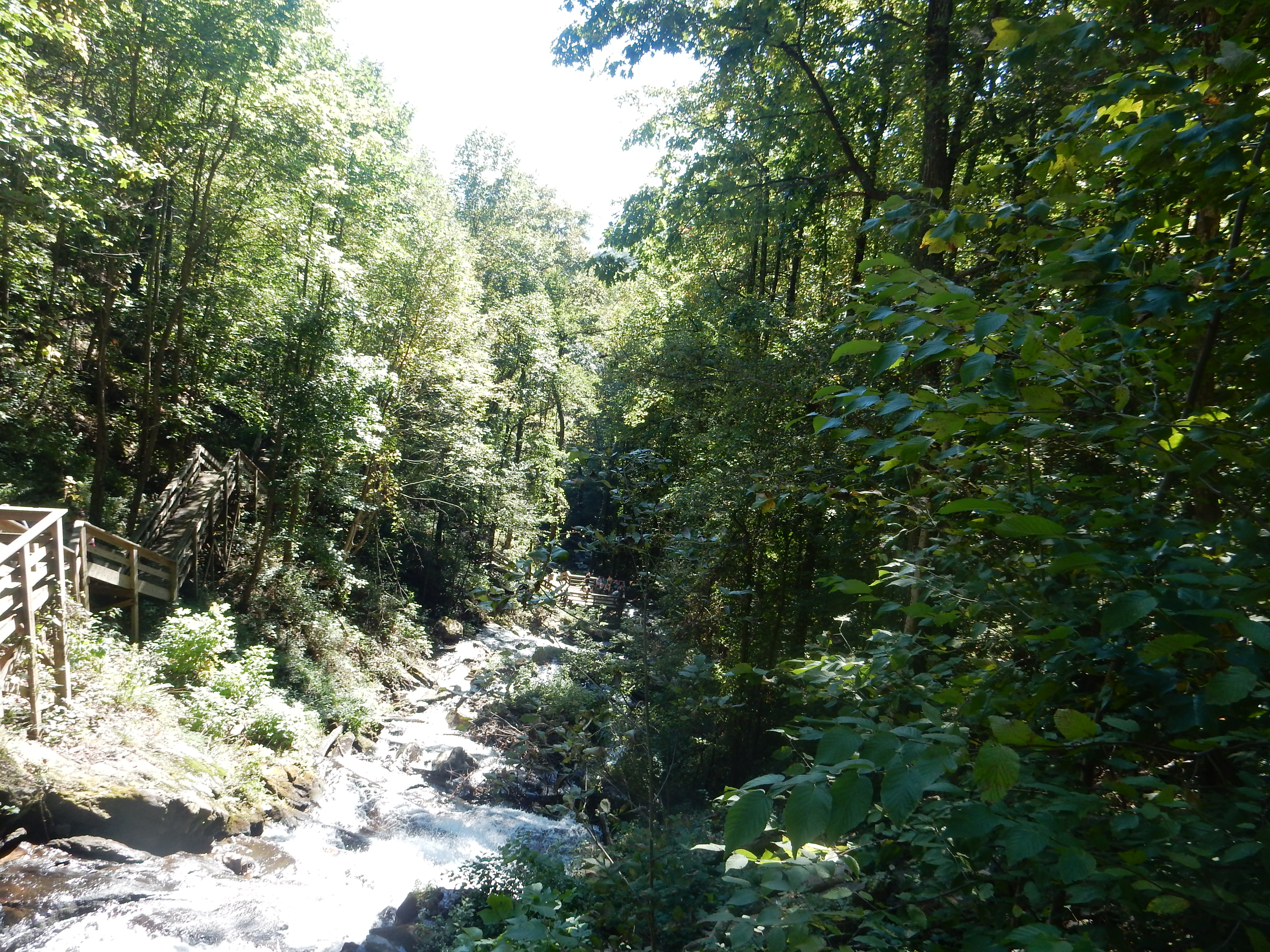 We hiked a good portion of the falls, going down 175 steps and back up 175 steps plus walking on trails before and after the steps with a steep grade. BUT, we did not hike the second portion of the falls. That was another 425 steps up and 425 down and we felt no need to prove ourselves. The falls come from a small creek so while the drop is great to look at and to listen to, it is not overwhelming in the total amount of water flowing. There are numerous falls throughout Georgia and North Carolina, etc so we will have to pick and choose which ones we deem worthy of our time and energy.