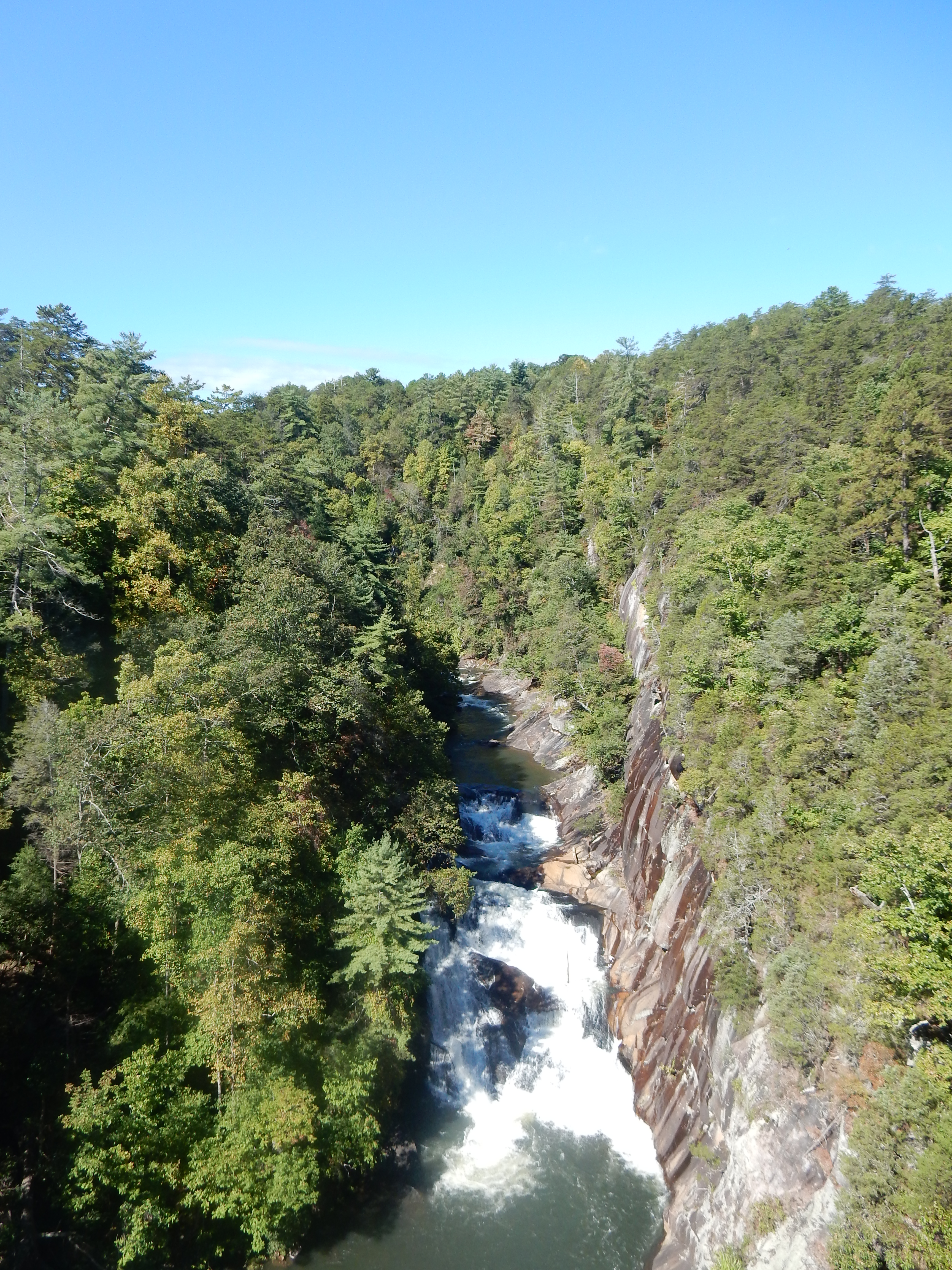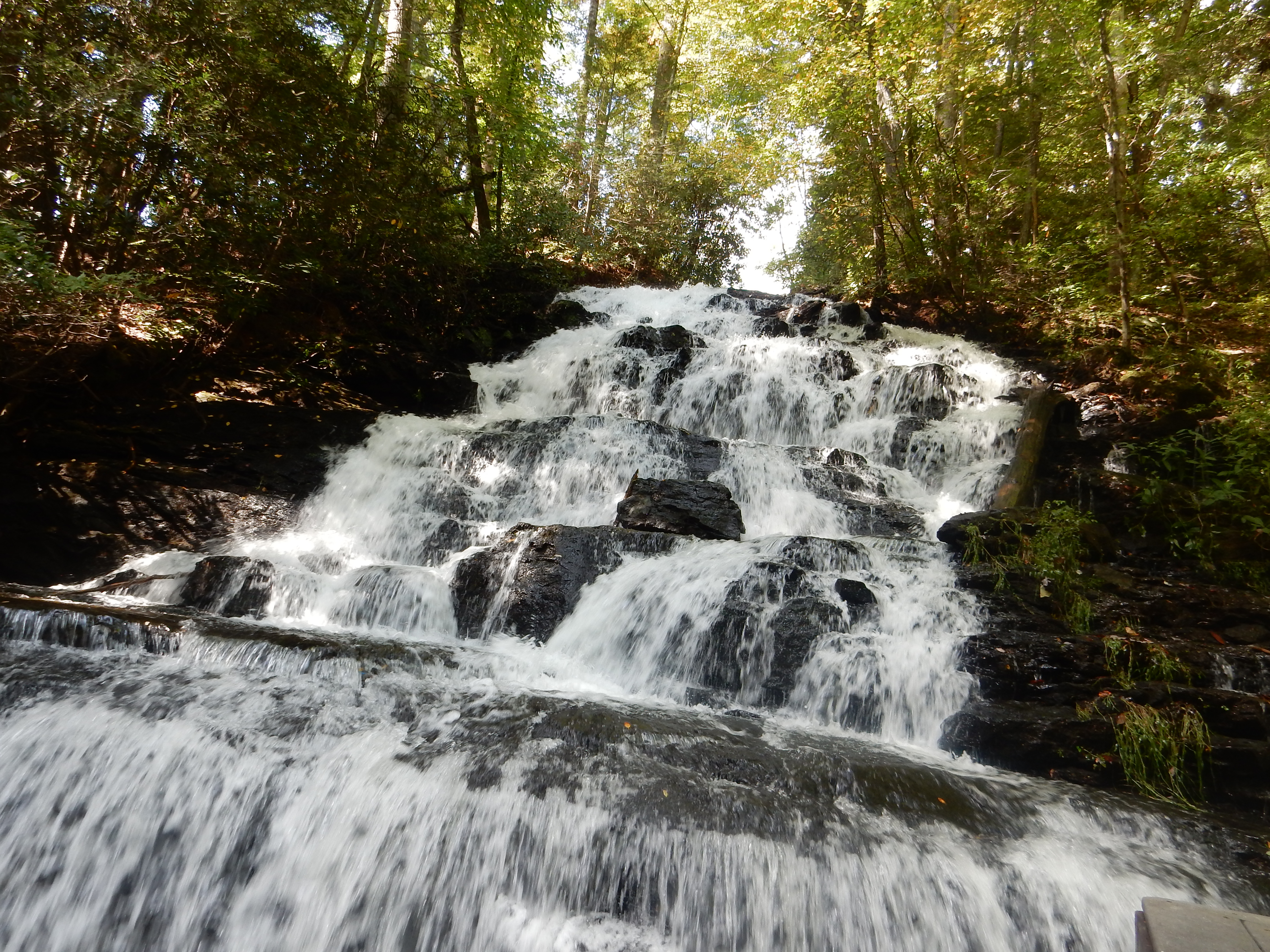 Today (Sunday) started out cloudy, with the rain that began Friday night continuing through all day Saturday. We only went on a few hikes Saturday. One was to Laurel Falls, an 80 foot waterfall that had high water volume due to the rain. The trail is one of the few paved trails but is steep and it took us over an hour to hike out and back the 2.6 mile trip. The Great Smoky Mountains usually receive 55 inches of rain per year. This makes for slick rocks and vegetation on the trails, but also translates into abundant vegetation. Mountain Laurel and Rhododendron are seen on most trails.