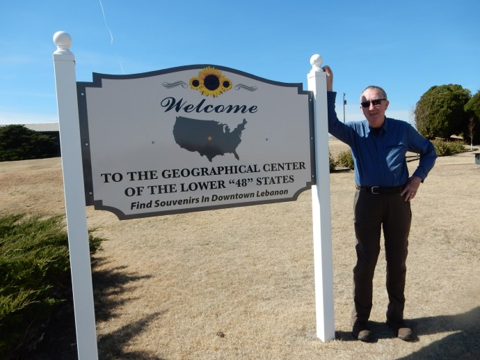 After church and breakfast, we left for our next destination, Topeka Kansas. No interstate today, it was two lane roads through farming country. The first portion of the day passed through the traditional flat corn and grain raising fields; frequently populated by sandhill cranes feeding on left over corn. As we drove further south, the land became less flat with rolling hills. Just south of the Nebraska-Kansas state line, we made a quick stop at the “Geographical Center for the Lower 48 States”. This location in the middle of agriculture is marked by a small chapel, a U.S. flag, a picnic table, and two markers.