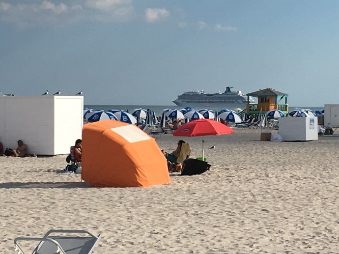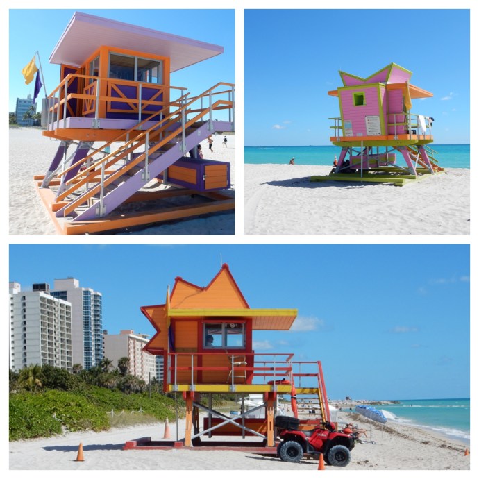 South Beach is known for the unique lifeguard stands lining the beach. No two are the same. Bright colors and styles differentiate them.