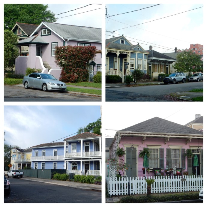 Today was the opposite of yesterday. Early morning clouds and fog gave way to sunshine, a mild breeze, and temperatures in the high 70s. Algiers Point was settled in 1719 but many buildings burnt down in a major fire in the late 1800s. Wood homes seem to predominate in the historic district and are colorfully decorated. Chris and I walked numerous blocks marveling at the varied colors. On the negative side, in this area the streets are poorly paved and sidewalks in rough condition when they exist. Utility poles and wires are everywhere. I can not profess to be an expert on the area; when we drove 3 miles tonight to a grocery store, we encountered much better streets and new home construction. A former Navy base is being re-developed into a mix of public and private offices, businesses and housing.
