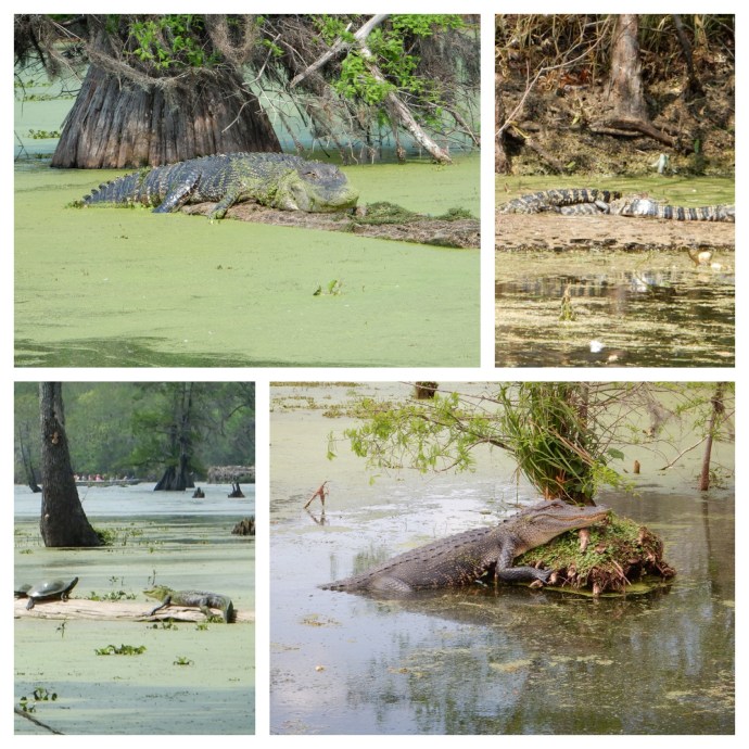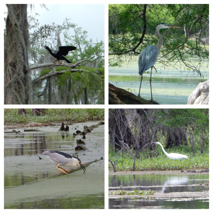 As our guide stated: “A marsh is a lake with trees in it.” Lake Martin runs between four and seven-foot of water and is now managed by The Nature conservancy. Together with the nearby Cypress Island Preserve, 10,000 acres of land, water, forest, and marsh are protected. Great Blue Herons, Great Egrets, Roseate Spoonbills, Anhingas, Cormorants, Whistling Ducks, etc. breed here and we observed all of those species. Alligators and turtles were everywhere, from small to large.