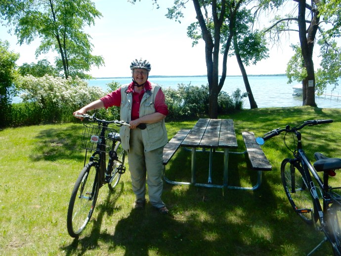 Tuesday June 6 we visited Glendalough State Park, home to three lakes and a portion of a fourth. Once a private property and game farm of the owners of the Minneapolis newspaper, the Minneapolis Tribune, the park offers canoeing, kayaking, biking, trails, camping, fishing, etc. We chose to take a 1 3/4 hour bike ride, renting bikes from the park concessionaire. The trail runs by the lakes and into the town of Battle Lake. Like many other areas of MN, bike paths are being expanded and used as a tourist draw. The park concessionaire has bike rentals in Battle Lake also.