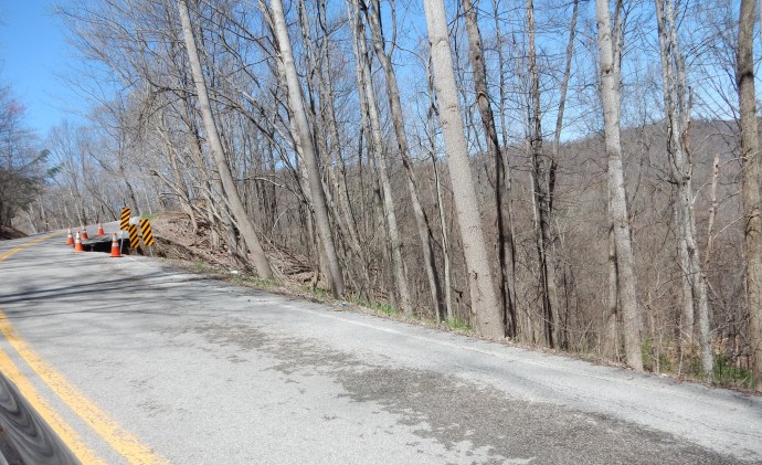 Kentucky Highways 160 and 931 were generally suitable roads; except for two things. First, I have never previously seen a road sign (that I recall) that read: “Break in Pavement”. On 160 I saw four. The first one probably indicated a location where some rock had fallen close to the shoulder of the road. (The signs are well ahead of the actual situation.) The second one was seen about a 1/4 mile and around a curve in front of a four-foot washout that extended into half of the oncoming driving lane. It did have an orange traffic cone stuck in the middle of the hole. The other two marked similar dangerous pavement subsidence that would have halted your car in its tracks. Now, I ask you: Why go to the bother of putting up a sign and not just fixing the dangerous road condition????