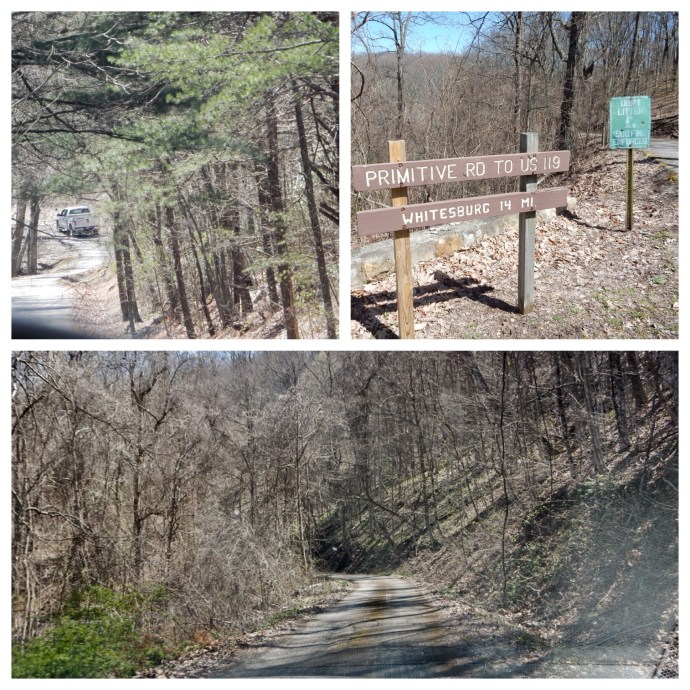 Road option number two. KY 160 went up the west side of the park and led to another road that led to the visitor center. So we went up KY 160 and turned on the road, Kentucky Highway 1679. Now, we have driven on lots of gravel roads, lots of twisty roads, lots of roads with steep drop-offs, lots of narrow roads, etc. But even I stopped a few hundred feet into the road and backed down to Hwy 160. 1679 was rough, narrow, with steep drop-offs, and no visible means of allowing an oncoming car to pass by. It was miles to the park. It was a good decision, although while backing down I was doubting it. We later discovered 1679, although a state highway, is considered a primitive road, best used by 4 wheeling ATVs or high clearance 4 x 4 vehicles. We approached this 39 mile road from four entrances (more on that later) and only one of the four mentioned the primitive road feature.