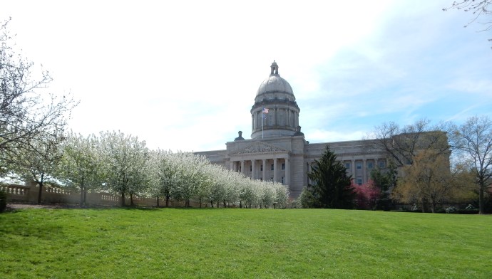Only five major statues were apparent(Lincoln, Clay, Barclay, Davis, and Ephraim McDowell-a pioneer in frontier surgery.) There are two murals, one at each of the East and West wings depicting significant events in Daniel Boone’s time in Kentucky. The four corner columns in the Rotunda have small murals at top of the columns. Portraits of Justices lined many walls. This was the first state capitol in which we noticed a chapel in the building, although it too was locked today. In all it was impressive and open, although not beautiful in the sense of dramatic artwork like Missouri or Kansas.
