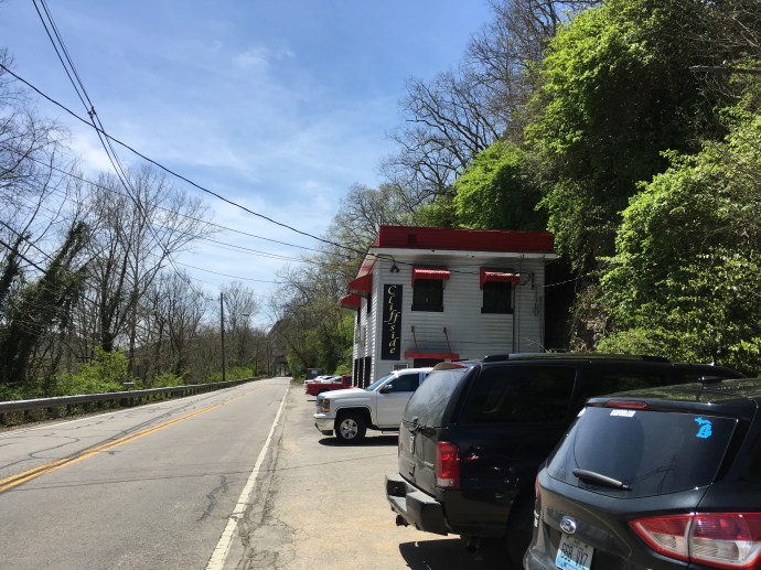 I ordered the meat loaf special and when the food came, we dug in. I was surprised my meatloaf came as a sandwich. Well, it was not my meal, I got someone else’s order, the Cliffside burger. The mistake was the talk of the small group of us for the rest of the meal. The Cliffside tasted great; and the guy to Chris’s left, whose Cliffside I got, was content to wait for his. Another customer came in and sat between Chris and the other guy and by the end of our meal, he had given Chris the recommendation for where we should have dinner back in Lexington tonight. The Ramsey restaurant has four locations, one near our lodging. Turns out we both had their veggie plate, four vegetables picked from 23 options.
