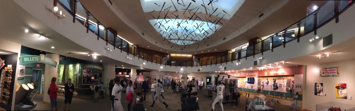 The wood baseball bats are still made at the downtown Louisville factory. The tour guide mentioned how the emerald ash borer is wrecking havoc with white ash trees, one of three main trees used for making bats. Maple and birch are also used, maple actually being the predominant trees. The forests of southern New York and northern Pennsylvania are the sources of the trees. Each player can choose from five colors allowed by Major League Baseball and from numerous weights, shapes, and lengths. His final selections are kept on file and new bats are shipped as requested. His team pays for the cost of the bats.