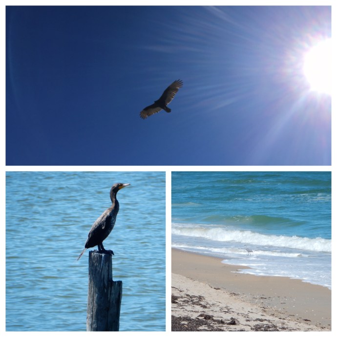 Our drive included stops at several locations, observing the combined saltwater to freshwater habitat since the national seashore covers both the Atlantic Ocean and the Indian River Intercoastal Waterway. We were able to observe several dolphins but no manatees. Our lunch of peanut butter and jelly sandwiches and grapes was enjoyed sitting on a bench; watching the ocean waves and the raptors flying directly over our heads. Chris, in particular, enjoyed the sun’s rays beating down on her, helping to dissipate the last effects of her cold.