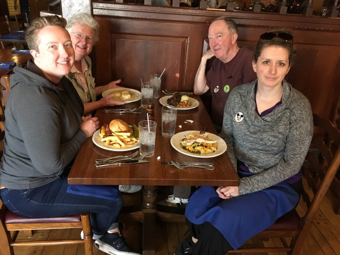We wandered back and forth though the park trying various park experiences and had a great time. Lunch was at Satu’li Canteen with tasty and healthy meal combinations. In the afternoon, Sarah, Sarah and Daniel decided to separate and take a chance waiting in line for Avatar-Flight of Passage. They felt the just over two-hour wait was worth the experience, although a second ride would not have been.