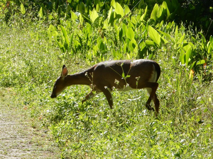 On our second hike, we met another volunteer clearing the trail to assist people in walking along. We asked him about the alligator and he suggested that in the future, we should use a big stick and gently touch the alligator on the tail. That touch normally would encourage it to just move forward a bit. We thanked him but I am not sure we will take advantage of this suggestion in the future.