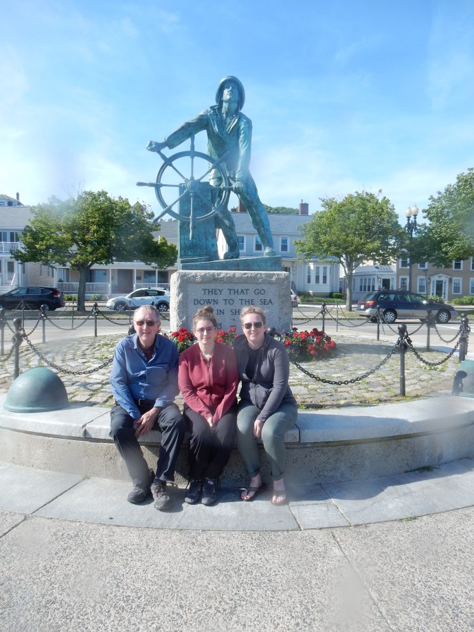 Back in Gloucester, we did a short walk around the harbor before heading back to the hotel. Two stops on the walk, one for ice cream and one at the famous Gloucester Man at the Wheel statue. The statue honors the Gloucester fishermen who have been lost at sea; it is inscribed with the words: “They that go down to the sea in ships.” Dinner was just pizza in the room, the fish lunch had been quite filling.