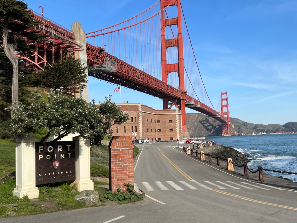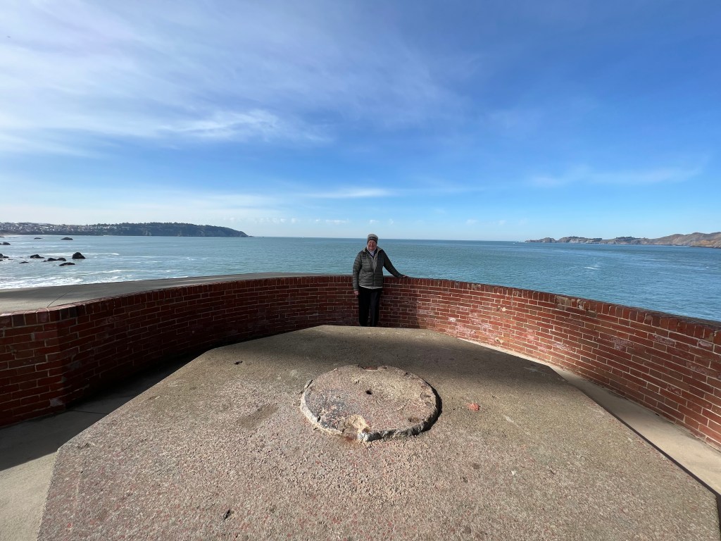 Today was spent exploring areas near the Golden Gate Bridge. After breakfast, we took an Uber (our first, normally we have our own car or have a rental) to the Welcome Center for the Golden Gate Bridge. This was primarily a photo op, there is not much at the Welcome Center but the staff there helped direct us to the paths we would walk to our destinations for the day. We will be driving over the bridge next Wednesday and had no desire to walk over the bridge. Our day was going to include enough walking as it was.