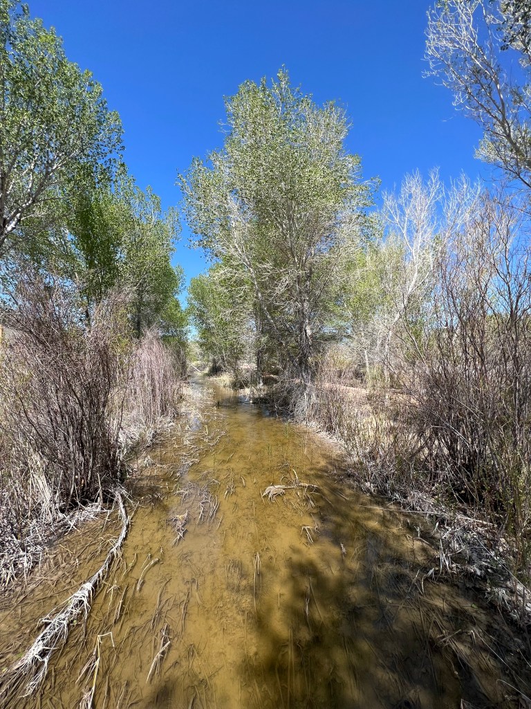 We rarely like to just drive from one destination to another so we stopped at Pahranagat National Wildlife Refuge. The wildlife refuge contains some of those streams and a small lake contained in the great basin area. There was a pleasant half mile walk along the water course, mostly in shade. The visitor center was closed on Tuesdays and Wednesdays so we had a snack outside on one of the benches.