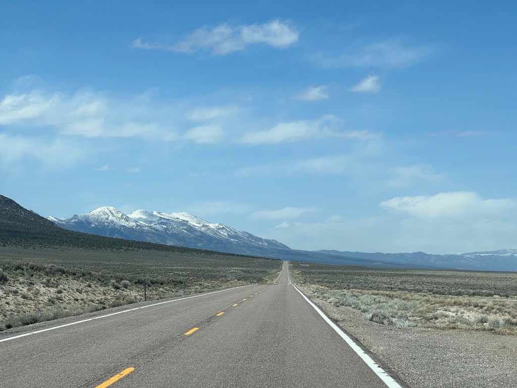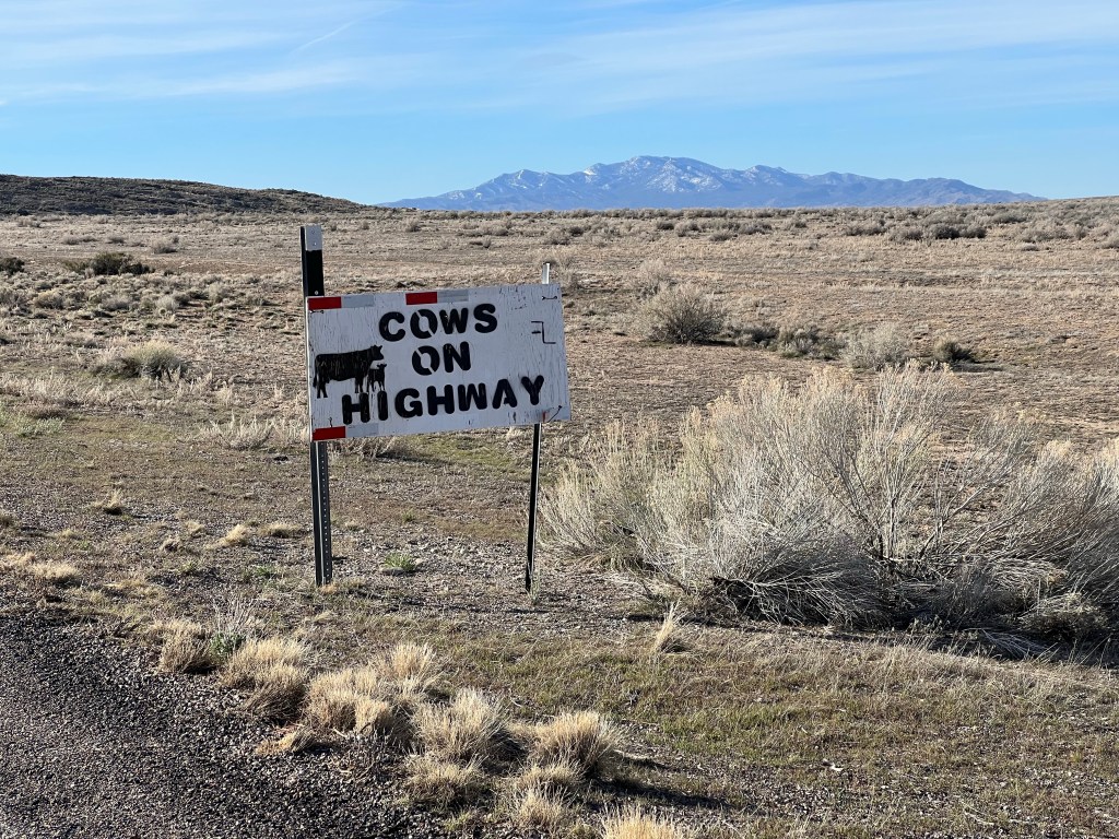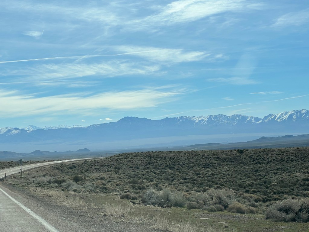 We stopped for lunch in the small town of Pioche, Nevada, population about 1400. The diner was empty when we walked in but 10 to 12 people came in while we were there, providing a bit of people watching opportunity. We gassed up once again, as we were leaving town, at the local Sinclair station, as Chris conversed with the owner, who came out to wash our windshield.