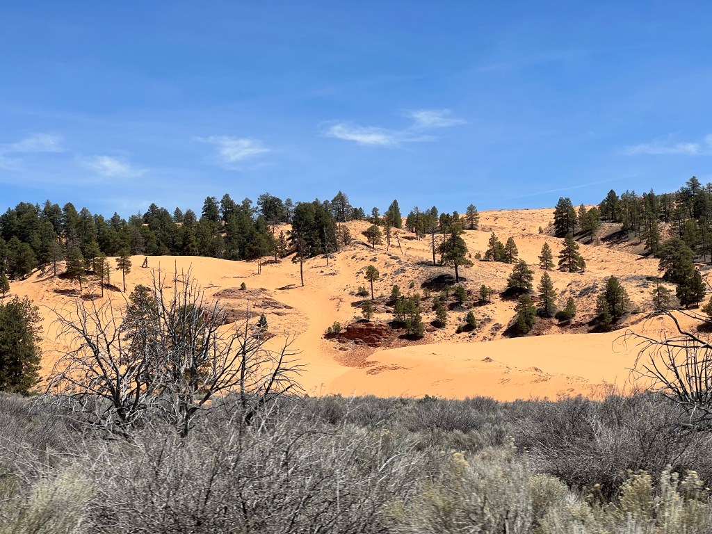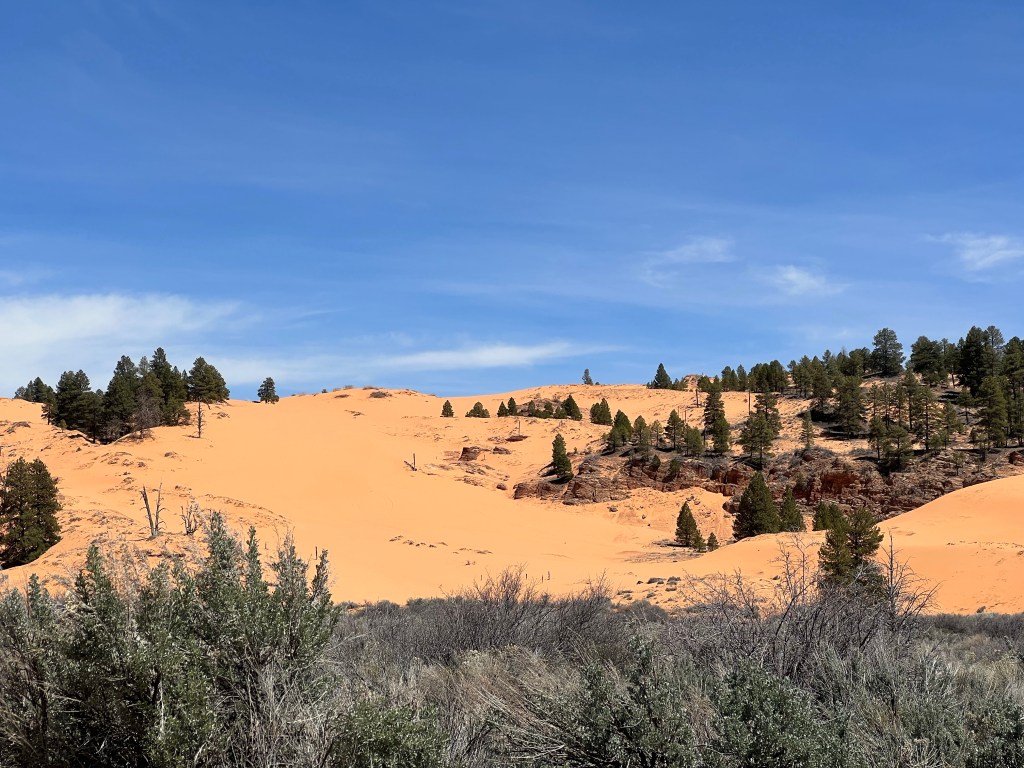 Coral Pink Sand dunes was on our list, even though we have been to several other sand dune state and national parks, because of its name. I was hoping for more of a pink color to the sand dunes, but it was more in the coral range.