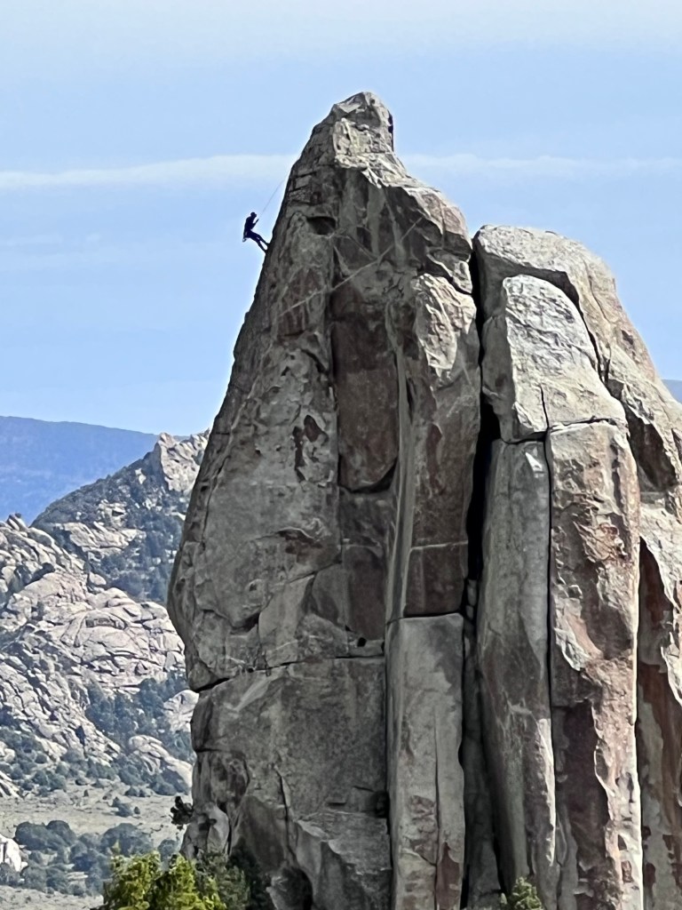 Driving into the park, we discovered huge granite rock monoliths littering the landscape. They stuck up like sore thumbs, with a swift transition from open fields to the rock monoliths. What we also discovered was that City of Rocks is a huge rock climbing location, even internationally renowned. Experienced rock climbers are able to tackle a large number of the rocks. There is even a training area for novices; sort of a bunny hill. As you can expect, we did not sign up for any training. There are many scattered, diverse campsites throughout the park. We observed more people camping and actively using this park than we had any of the previous parks. It is a well-known rock climbing destination among those who are interested in that. There are over 700 different climbing routes developed throughout the reserve and state park.