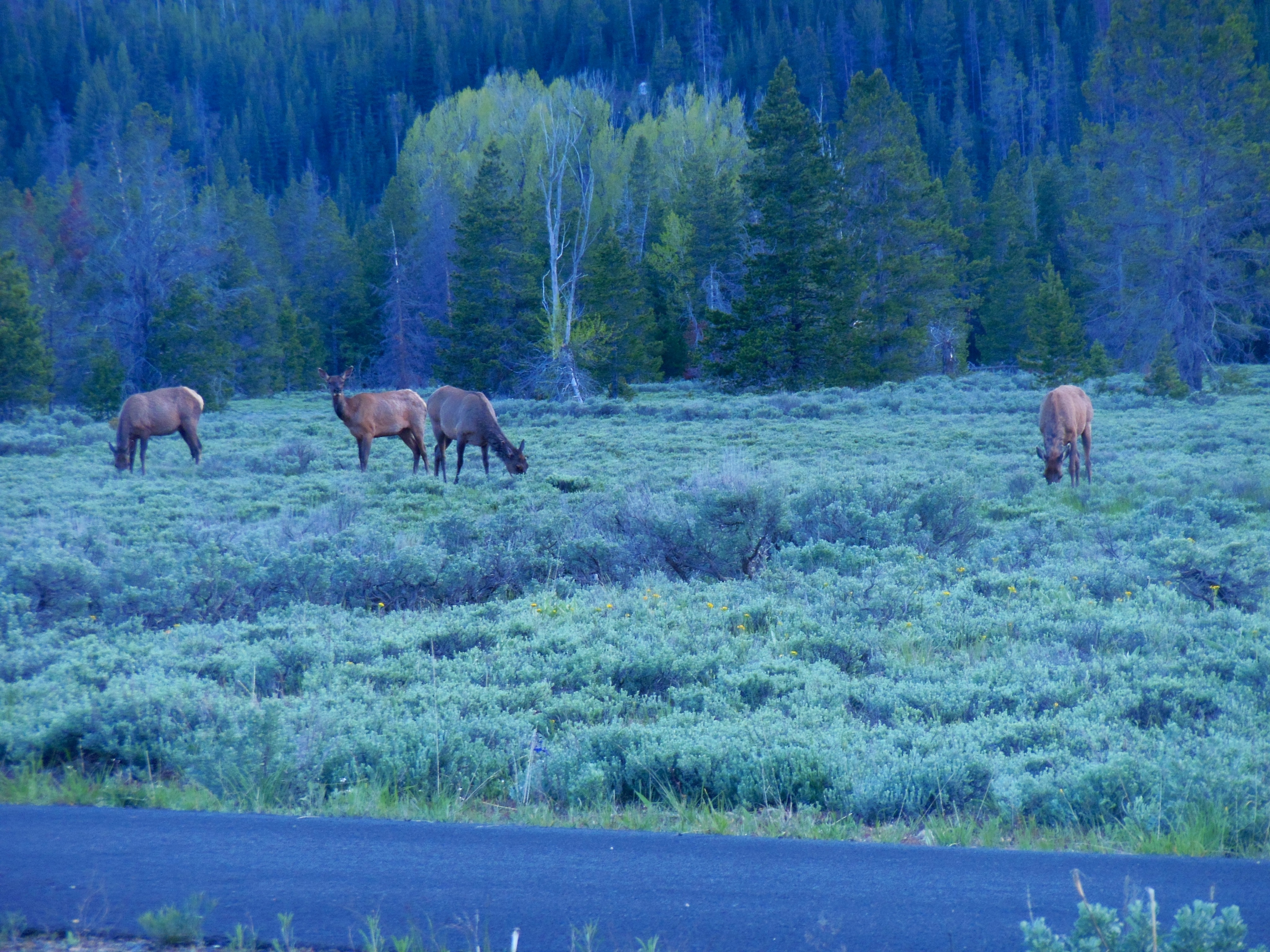 June 3 and we had snow and sleet showers today. We left Jackson WY and drove through Grand Teton National Park once again, from south to north. There was one small piece of it we did not spend much time in, Coulter Bay, but otherwise we have covered most of it.