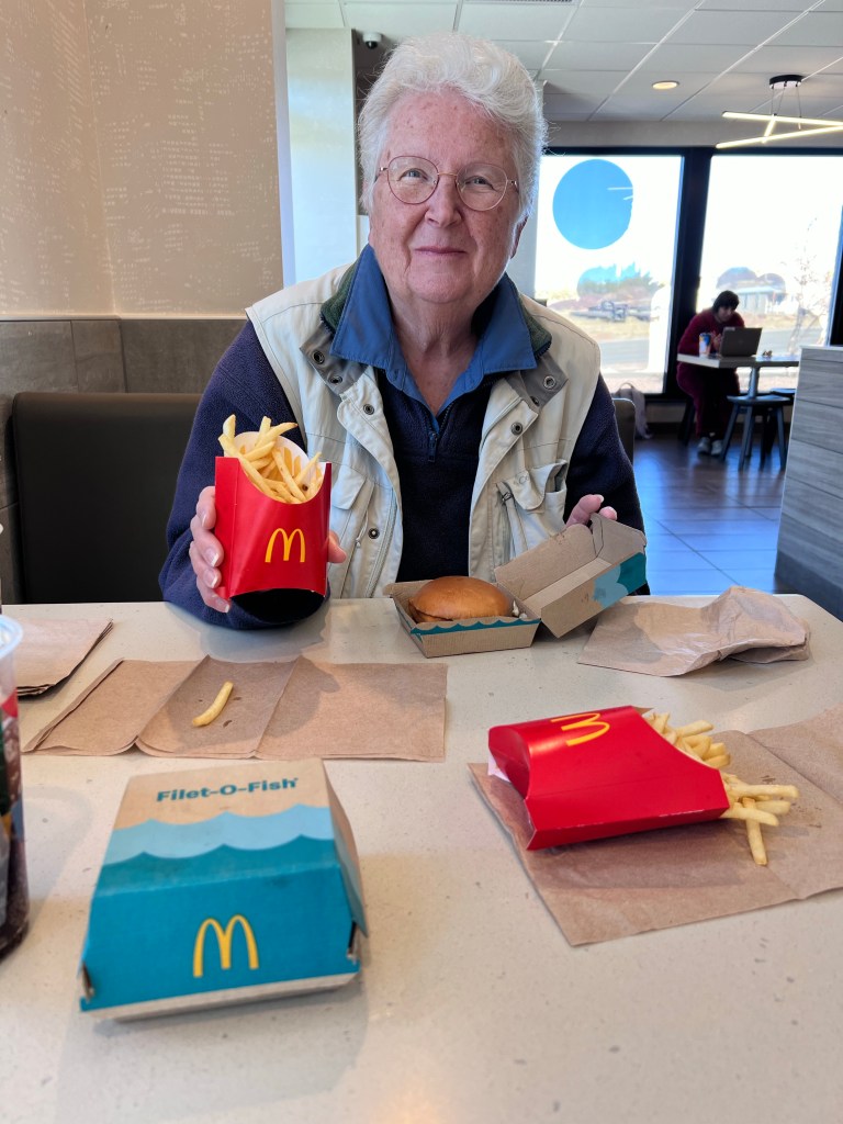 Our lodging this evening is at the El Morro RV Camp and Cabins which also runs the Ancient Way Cafe. (El Morro National Monument is one of tomorrow’s stops.) Our cabin is a small log cabin in the middle of nowhere. Even my Verizon hot spot is not getting good reception.