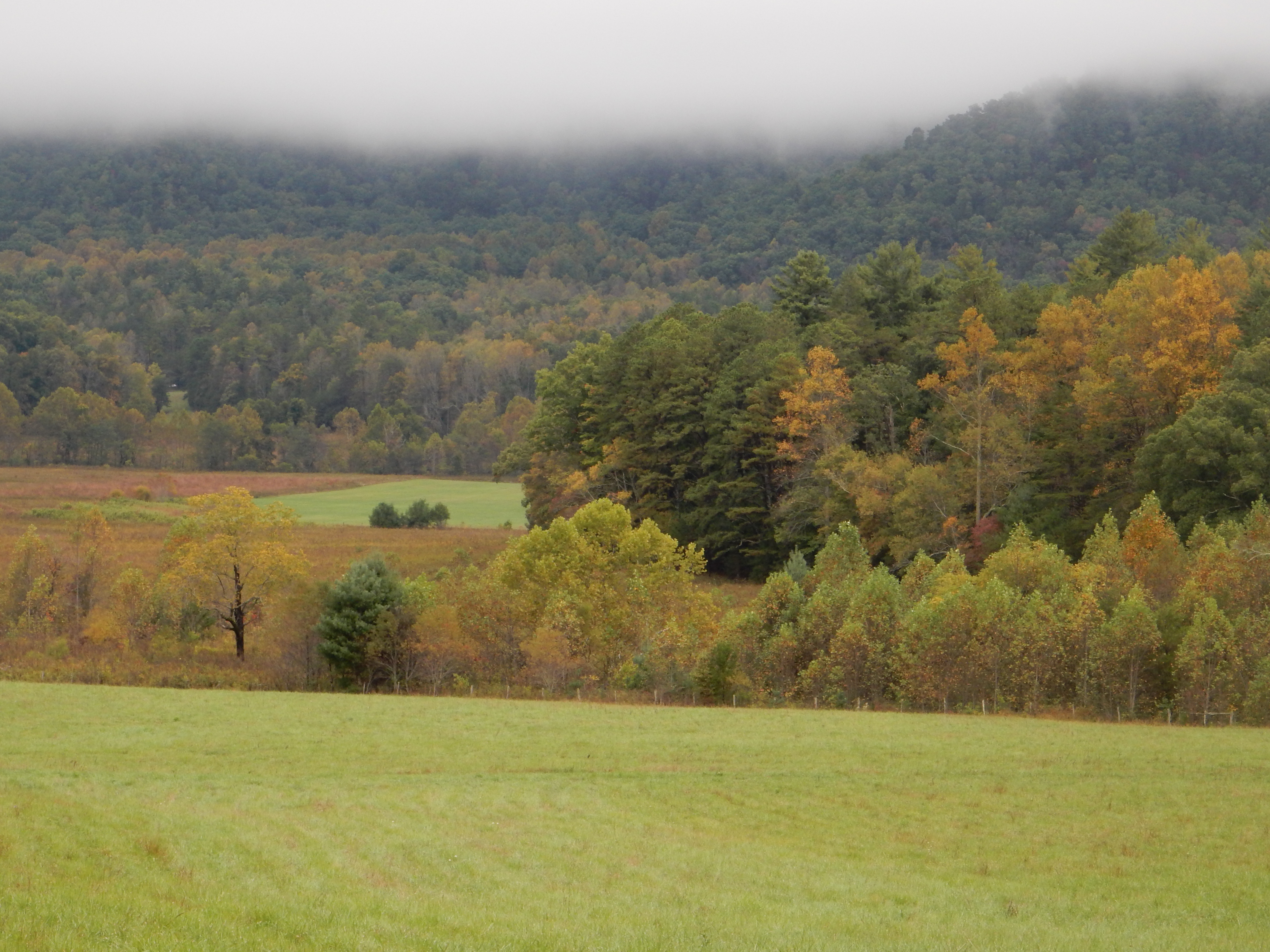 The weather has continued to be in the 70s and sunny; like much of the eastern two-thirds of the country the weekend is forecast to be wet and stormy. We are using the last two days of our time in the Great Smoky Mountains to hike. Thursday we slept in a bit and then headed for Cades Cove, a well-known area of the park showcasing Appalachian life before the park bought out the lands. The thought was to hike to Abrams Falls. Unfortunately, we spent a good part of the day driving. Cades Cove is a an hour and a half drive, plus you add time for the 15 mph Cades Cove Loop Road (and you are lucky if you go 15 mph), for extra slow-moving vehicles, and people stopping to take pictures, etc.