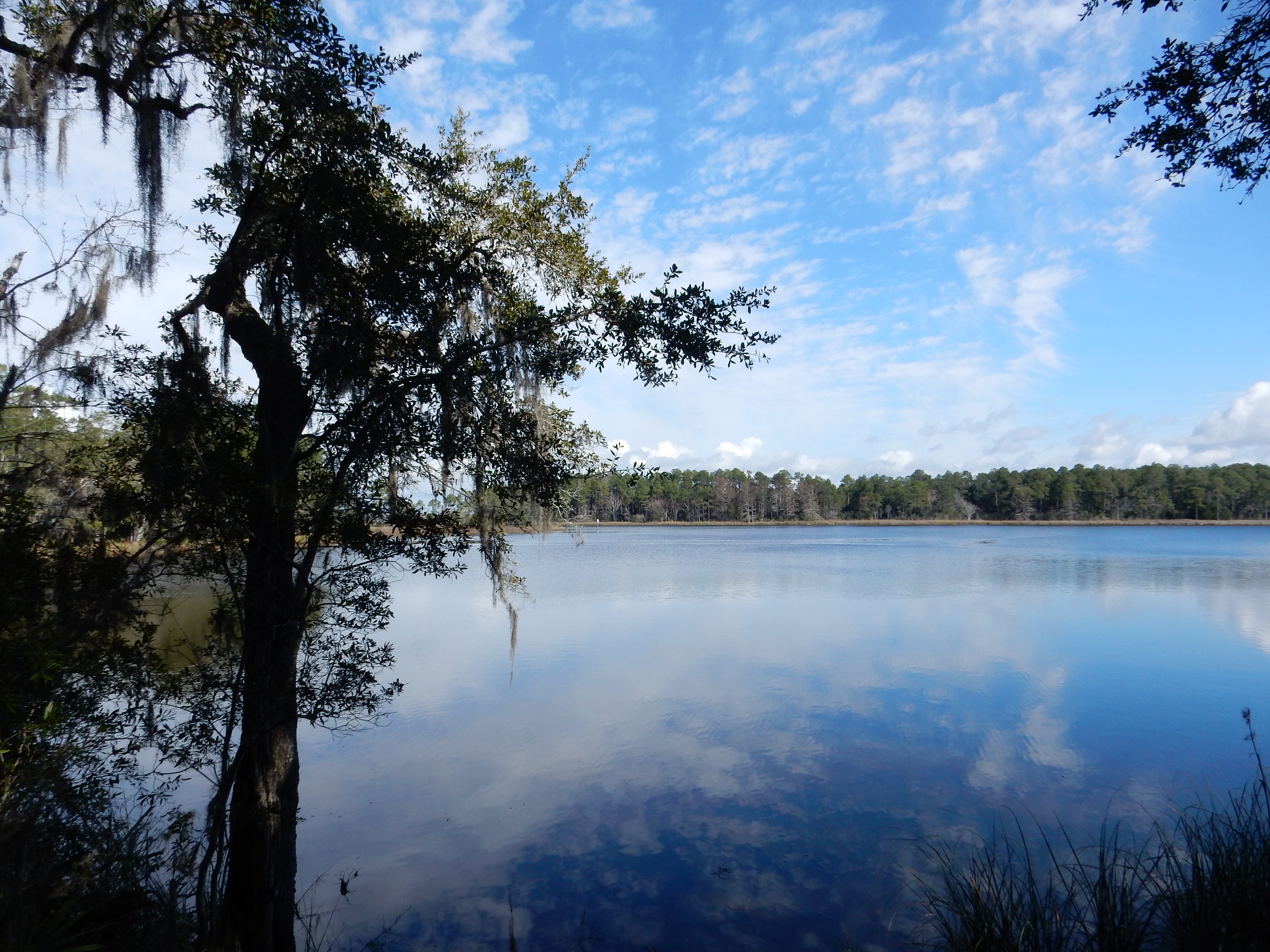 Today we headed over to Eden Gardens State Park. This is a small park, only 163 acres. The grounds have several gardens, a nature trail, and lovely trees. There is a home built by a local lumbering family, then remodeled and eventually given to the state in 1968. The house was built in 1897 by the Wesley’s who used the property as the hub for their lumber company with three mills and a dock to ship lumber. At that time, the lumber in the area was just being cut; however, it did not take too many decades before the virgin forests were exhausted. The Wesleys did not cut down the large Virginia live oaks on the property. One of them is reputed to be over 600 years old.