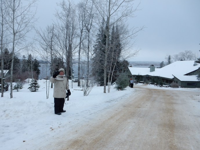 Chris is starting her 70th birthday celebration six weeks early. This is a winter vacation in the north woods of Minnesota. Monday morning we left Duluth. It is 110 miles to Grand Marais where we turn NW to our lodging at Gunflint Lodge. The trip from Duluth to Grand Marais is all along the Lake Superior shoreline. We decided to go 40 miles past Grand Marais and visit Grand Portage State Park. Since we are on our second go-round with visiting all of MN’s state parks, visiting Grand Portage at the tip of the Arrowhead region made sense. The state park highlights the High Falls of the Pigeon River which forms a portion of the boundary between Canada and the U.S. We have been in the area before, writing in blogs in 2014, 2015, and 2016 so I am not going to go into details.