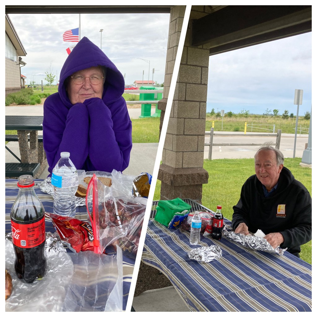 No major problems today. We had packed ham and cheese sandwiches and ate those north of Des Moines Iowa. We were looking forward to a nice juicy hamburger and handmade shake in Kearney Nebraska but forgot this is Sunday and Angus Burgers and Shakes closes at 4 PM. Our fallback location was Runza. This is a Nebraska chain selling burgers and their own handmade sandwiches. But their sandwiches remind us of the pasties from the UP of Michigan. Fresh dough like a soft grinder roll filled with ground beef and vegetables and spices. We have had it before and enjoyed them.