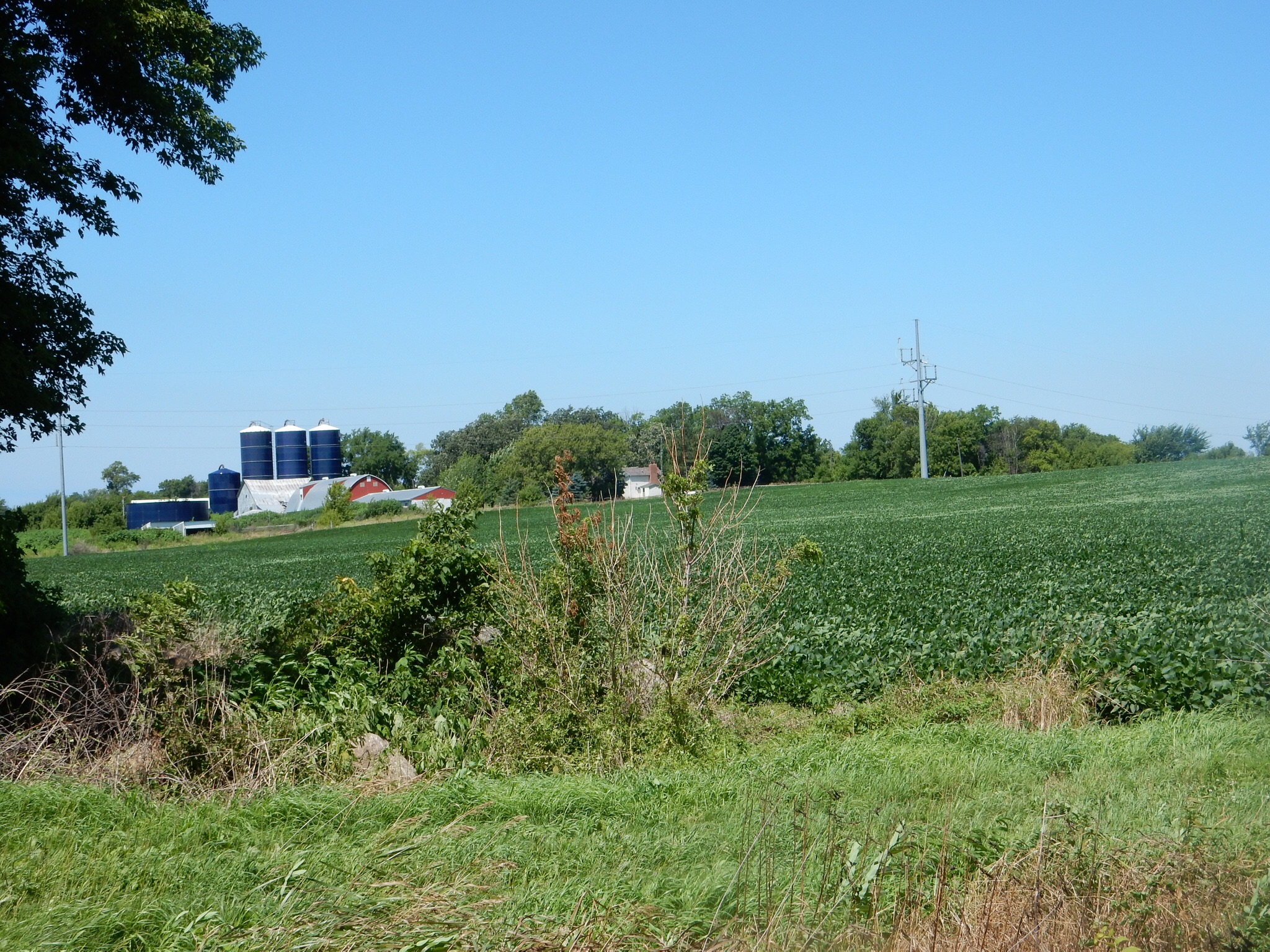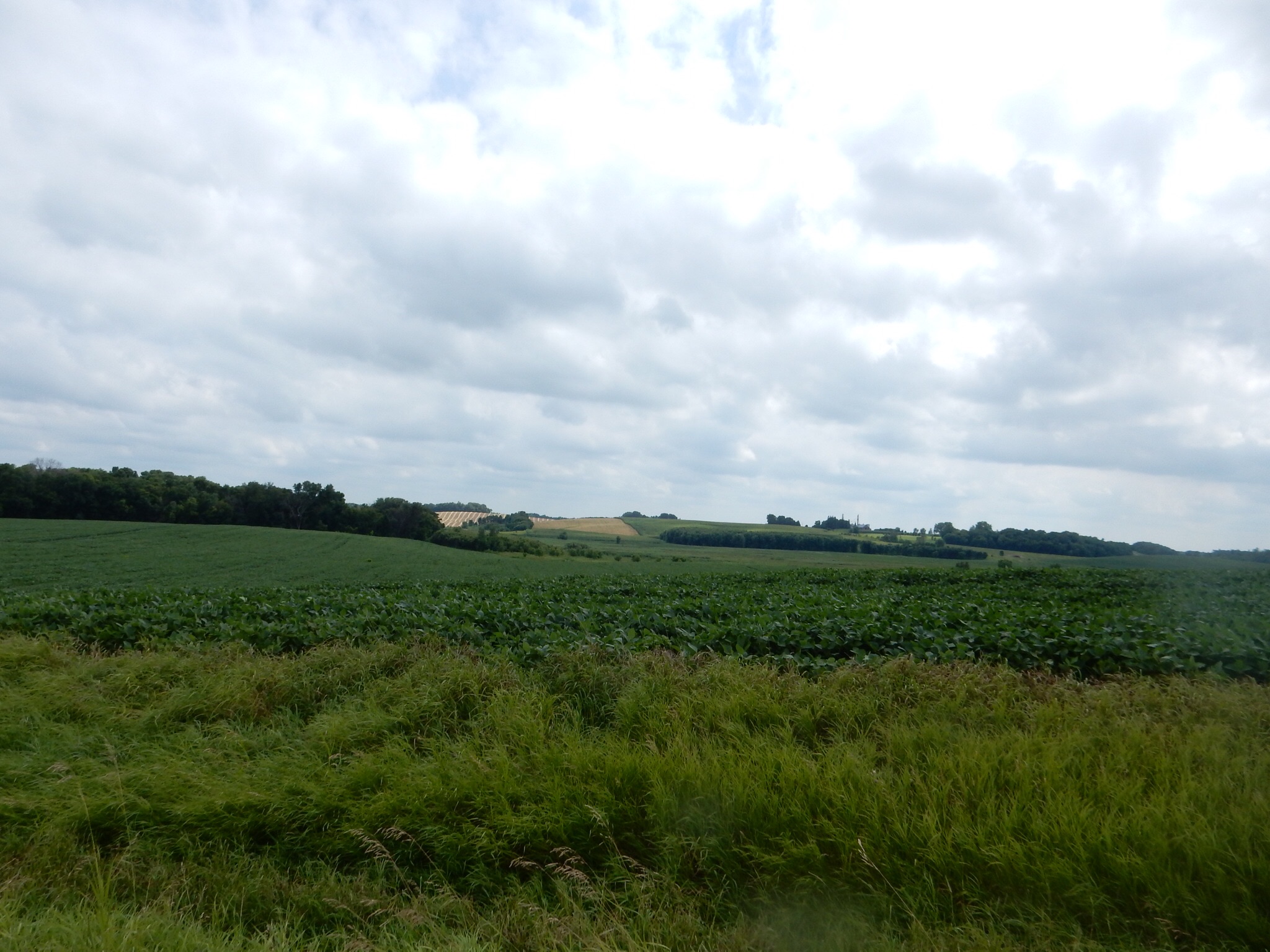 We biked for two hours, going east towards Faribault and then returning. The route goes through Sakatah Lake State Park. The lake is visible early on, then the remnants of the “Big Woods” are next. The tree-shaded route here was comforting on a hot day, but the biting insects were out and our brief rest stops, after the first one, were in sunny areas. Finally, the trail advances along open farmlands with enough patches of shade trees that the hot sun is not constant. The weather here has been good for crop growing, early spring, plenty of rain so far. In fact, the town received 4 inches of rain Thursday night, knocking down some branches. A light rain also fell Saturday night.