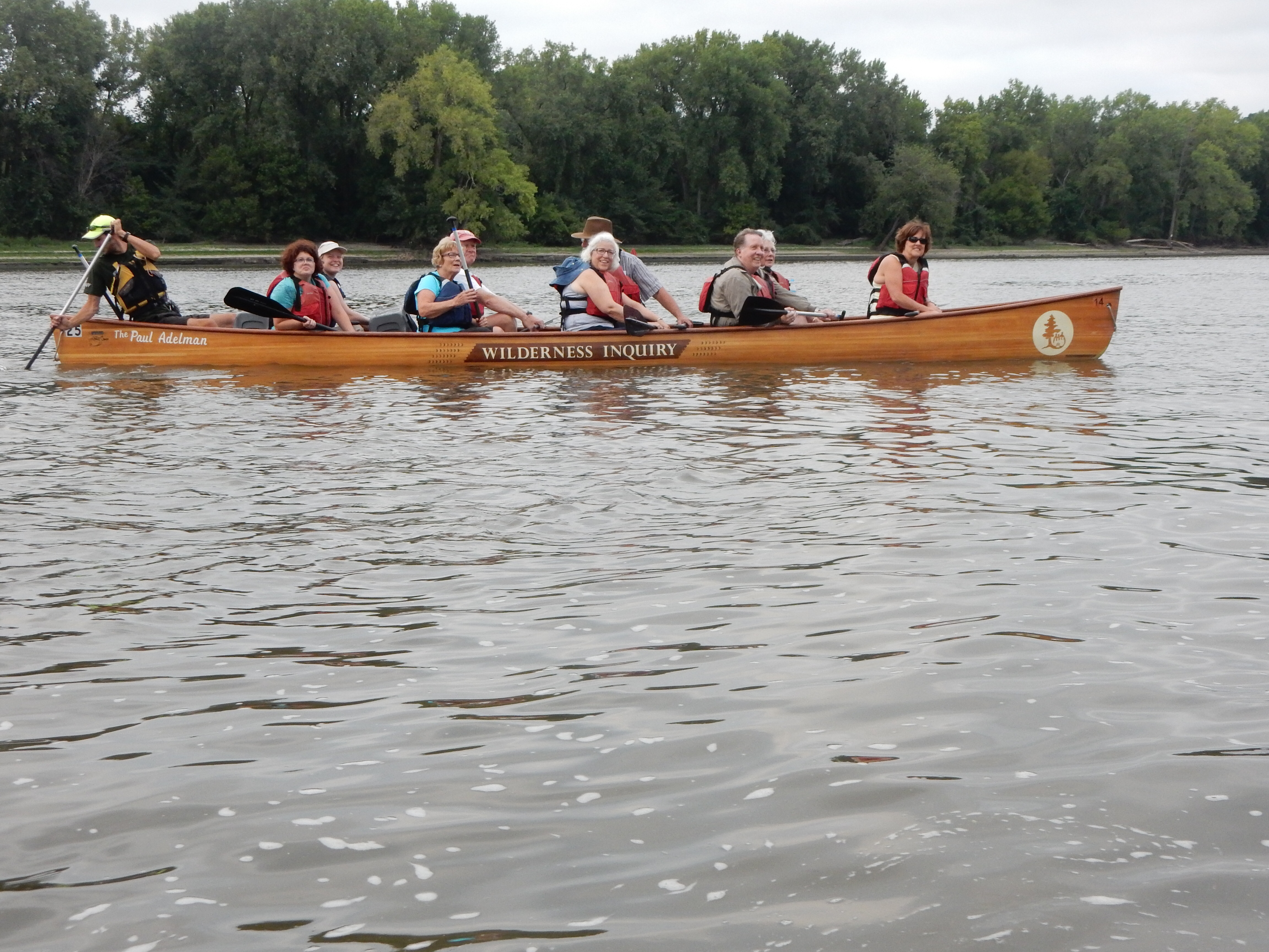 There were 60 people, 10 to a canoe. Yes, these were big canoes, fashioned after the style used by the French-Canadian voyageurs. Wilderness Inquiry is the vendor handling the details of the canoe trip and uses 24′ canoes built by Northwest Canoe of St. Paul. Evidently, each canoe costs about $12,000.