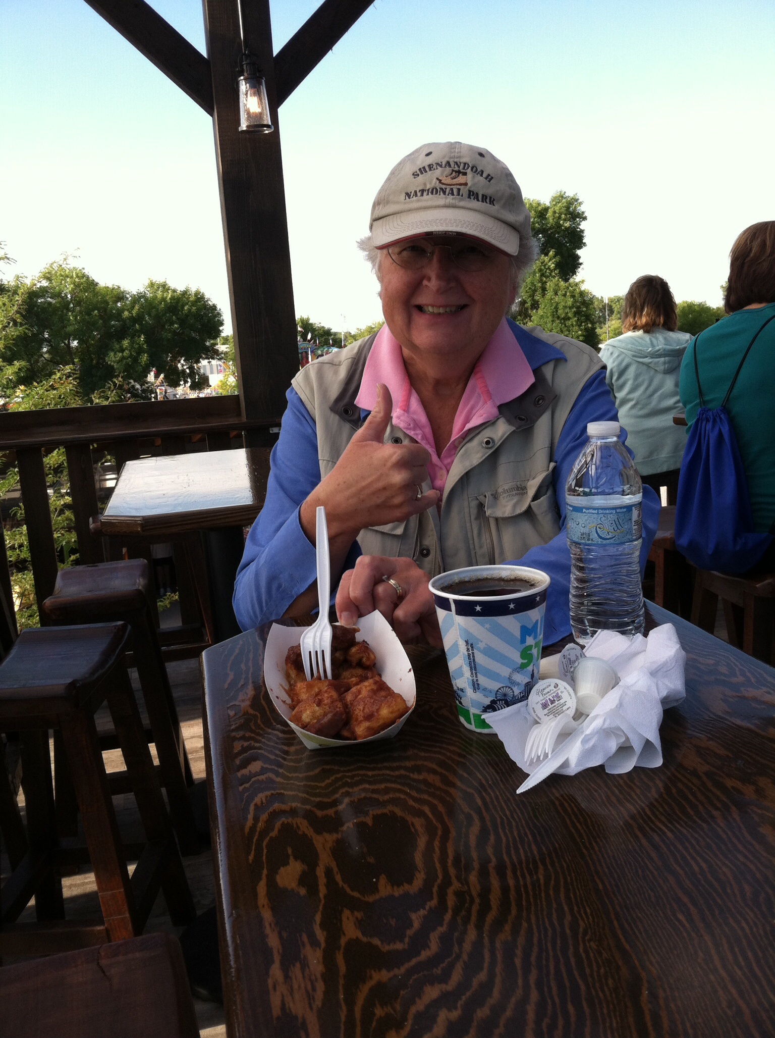 I volunteered at the Mississippi River Recreation booth from 10 AM to 1 PM. I felt sorry for the rangers who pulled 8 hour shifts; my legs and back were sore from just three hours. Chris did some walking, eating, and listened to music at the Leinie bandshell while I was slaving away.