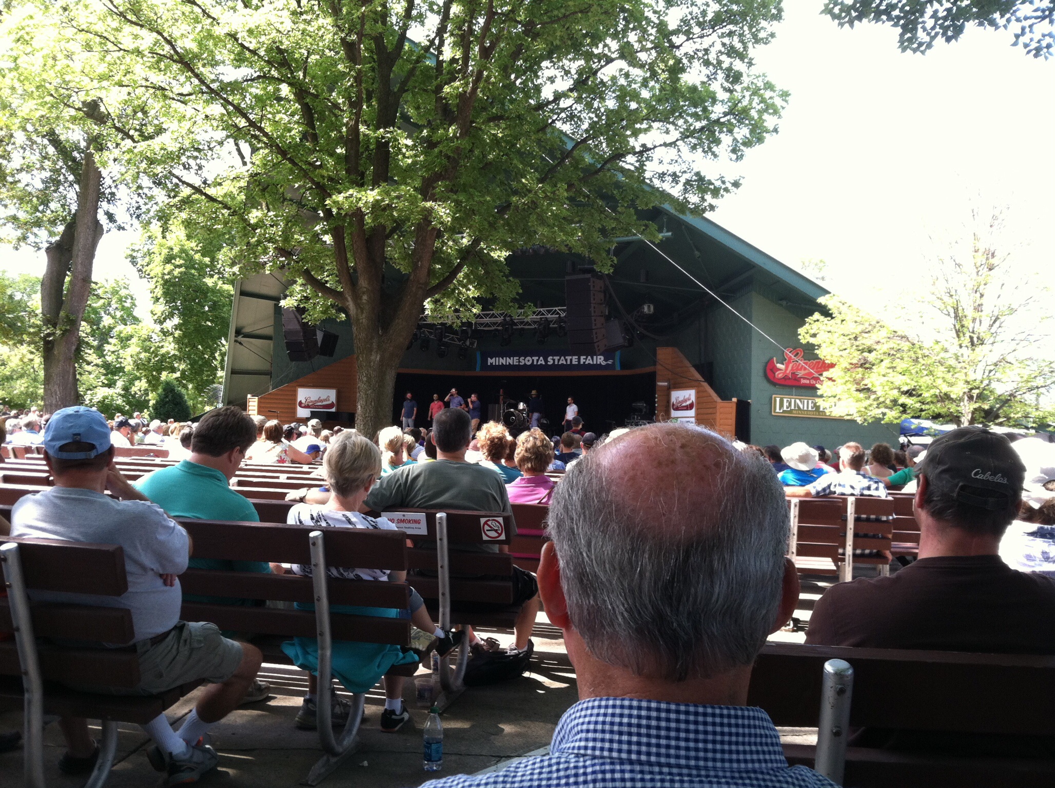 Wednesday was Fair day, the Great Minnesota Get-Together. We, and 125,000 others, spent all or part of the day there. The Minnesota State Fair has the largest average daily attendance of any state fair. The Texas State Fair has more total people but they go for 24 days. We made the 8 AM first bus from our local park and ride lot. Good thing we were early, at 7:40 we were about 25th in line. The bus driver said he had 93 people on the 57 passenger bus. There were still people waiting as the first bus pulled away.