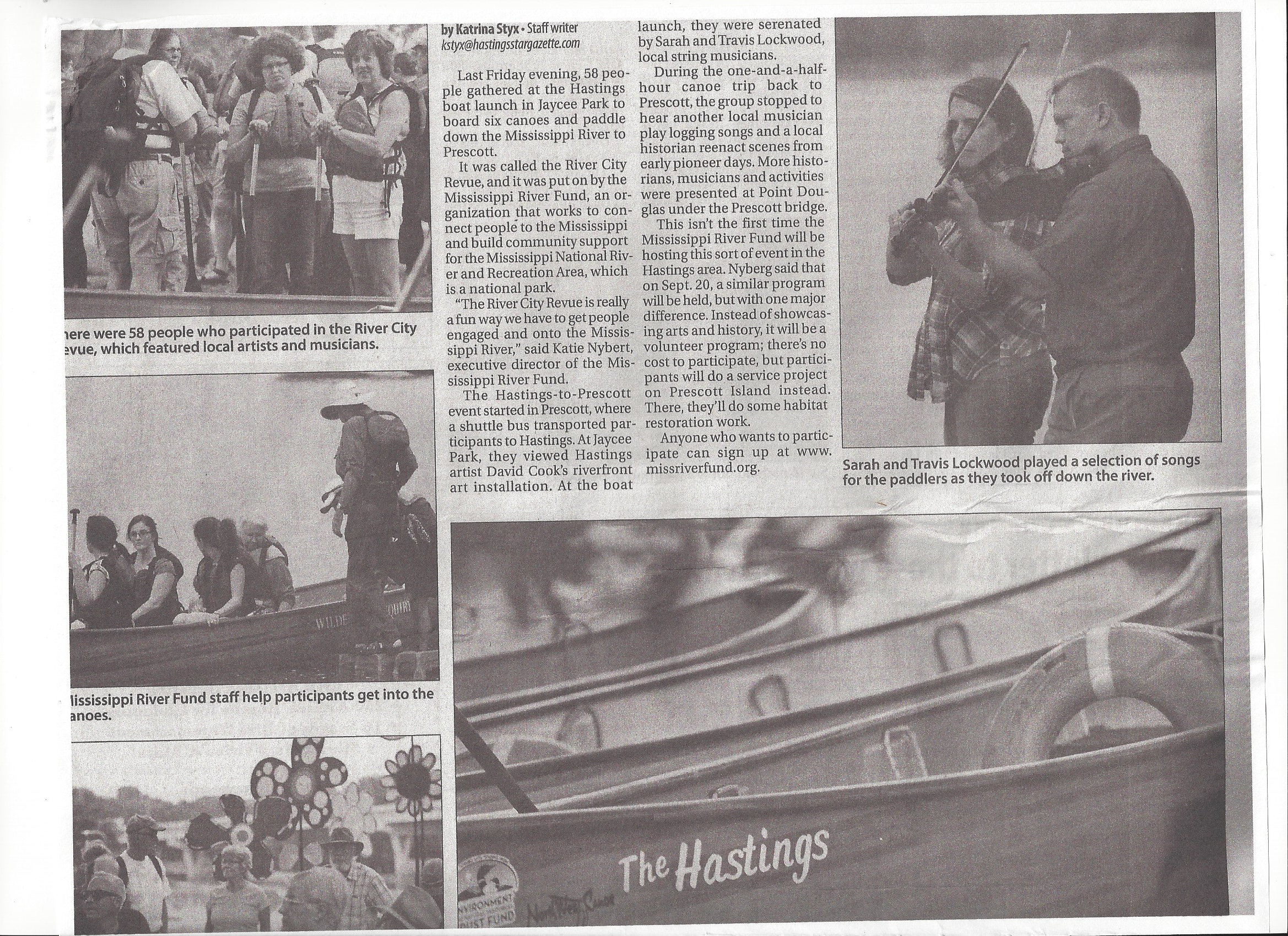 The trip not only included the paddling, but several supplements including: a.) a send off by two musicians in Hastings; b.) a musician dressed as a voyageur, playing a concertina and singing tunes of that French Canadian trappers era; c.) a local interpreter telling stories of early settlers; and d.) poems and stories of the Prescott area by two local interpreters.