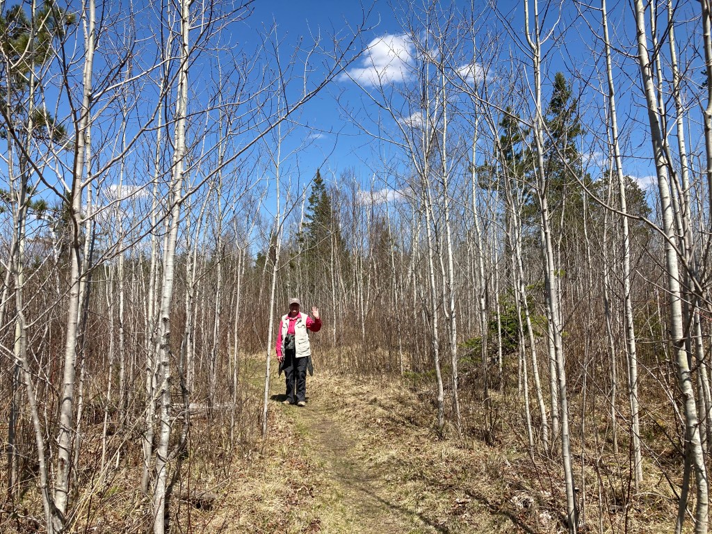 As we took our hike, we could see that the trees planted within the enclosure were doing much better than those outside the fence. Outside the fence, the aspen trees, which grow quickly in disturbed areas such as occurred here, have already created a dense area of young growth. While there are young jack pine trees, they are vastly outnumbered and look like they will soon be losing the battle for sufficient sunlight to thrive.