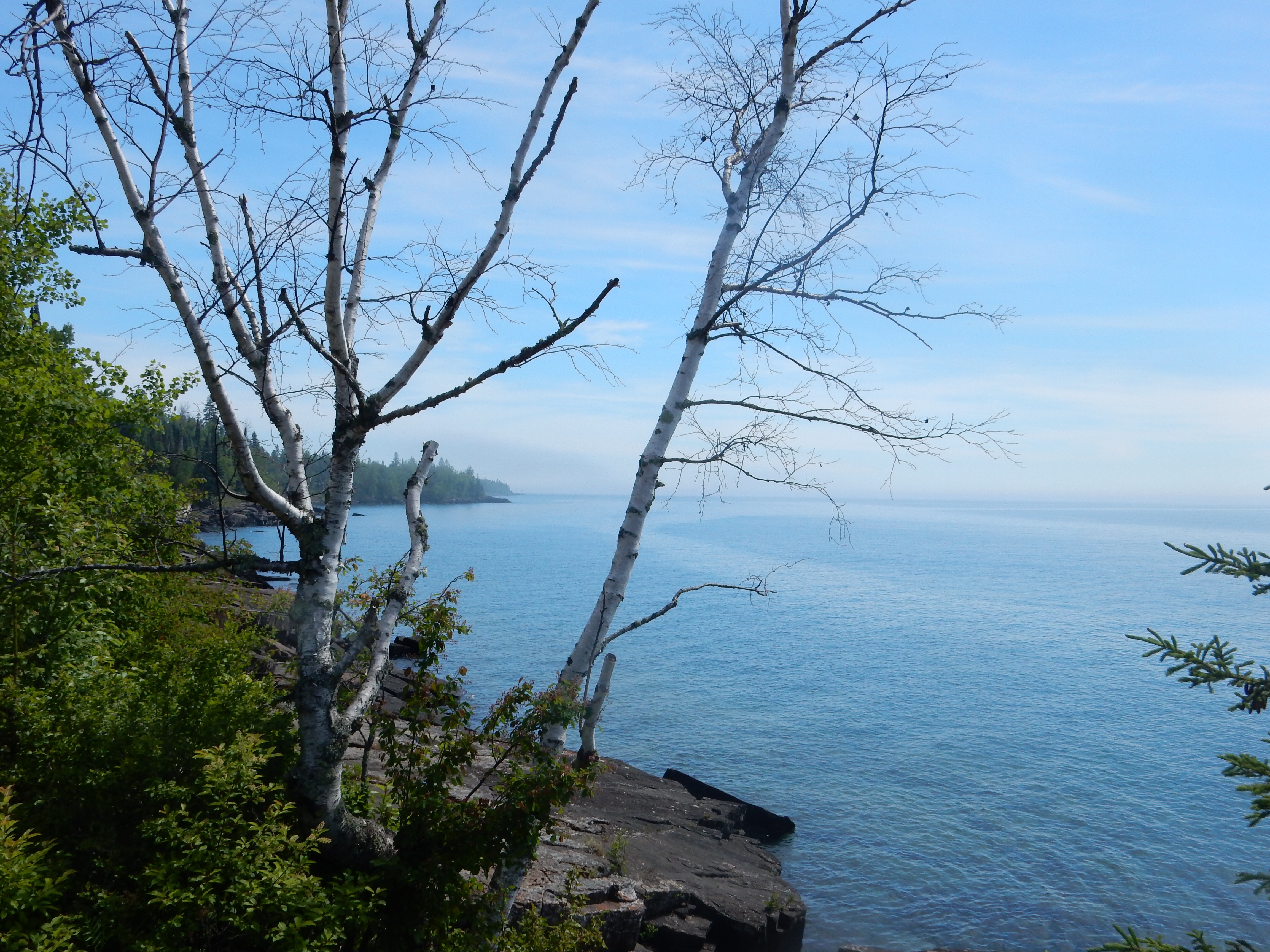 We hiked along the shoreline out towards the lighthouse sticking into the waters. The sun is starting to peek through the clouds, where it will remain out for just a brief portion of the day. At this park, as we have been doing previously, and as we will be doing for the remaining days of this trip, we keep looking for moose. Moose are declining in Minnesota although the reasons are not fully known. We keep hoping to see several, even just one, but our hopes are not to be fulfilled.