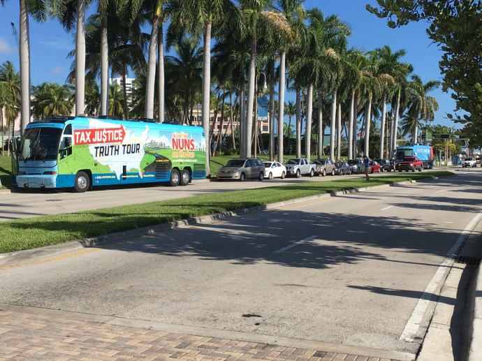 Nuns on the Bus. Well, this blog is political. Fair warning. One of the reasons we are down in Florida is to support the “Nuns on the Bus”; a group of Catholic religious women who are going around the country to educate the public about the inequalities in the 2017 tax bill. They make stops: at congressional offices, at local non-profits helping those in need of assistance, and at town hall locations to explain the tax bill.