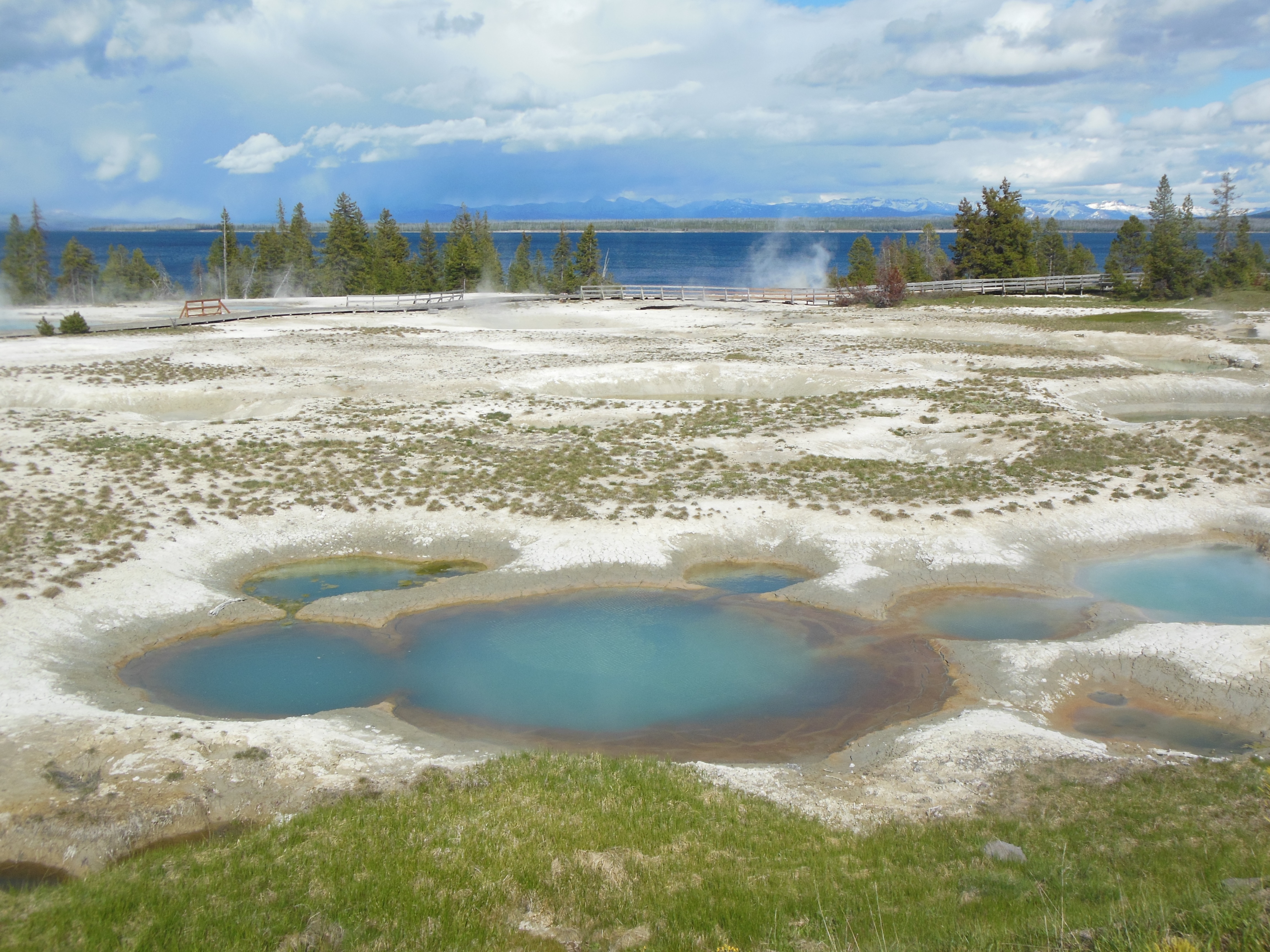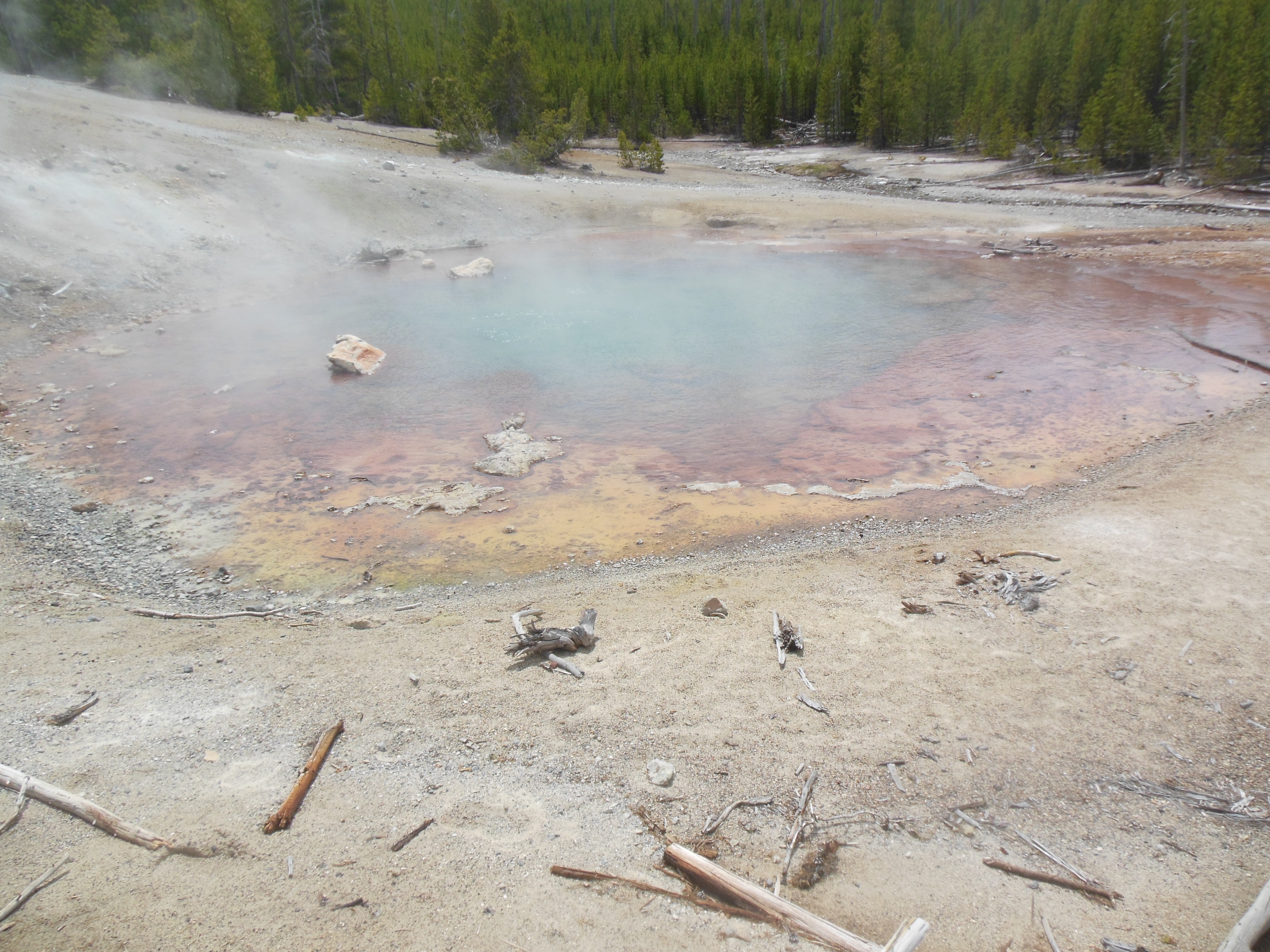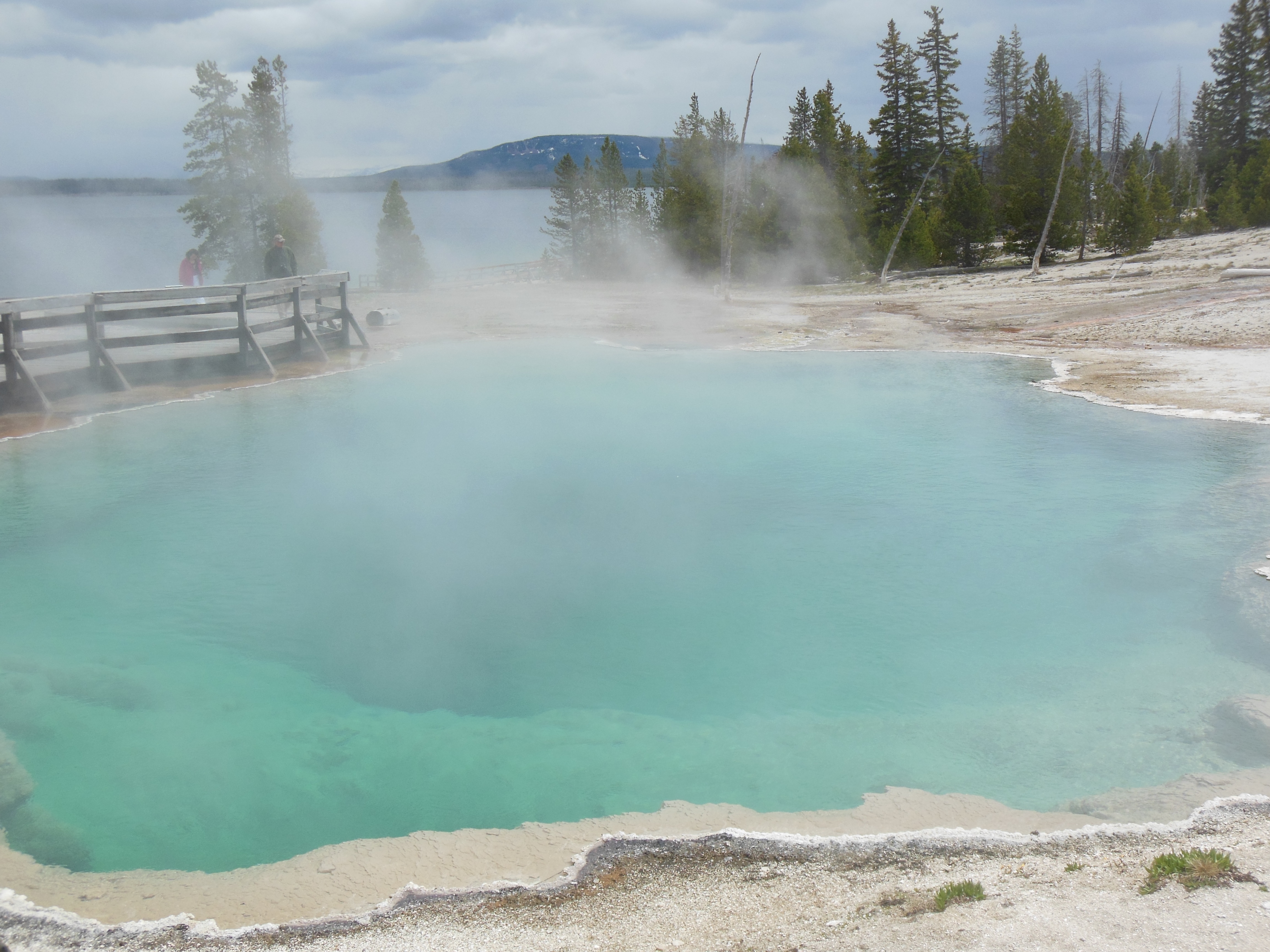 We went on two ranger hikes around the West Thumb thermal area. No major geysers here, but numerous fumeroles (Steam vents), mud pots and thermal springs. Some interesting tidbits: a. the Park Service used to have a fish and cook program whereby people could cook the fish they caught in a hot spring; and b. a few days ago, a young elk wandered into one of the pools and died, you can still see some of its bones.