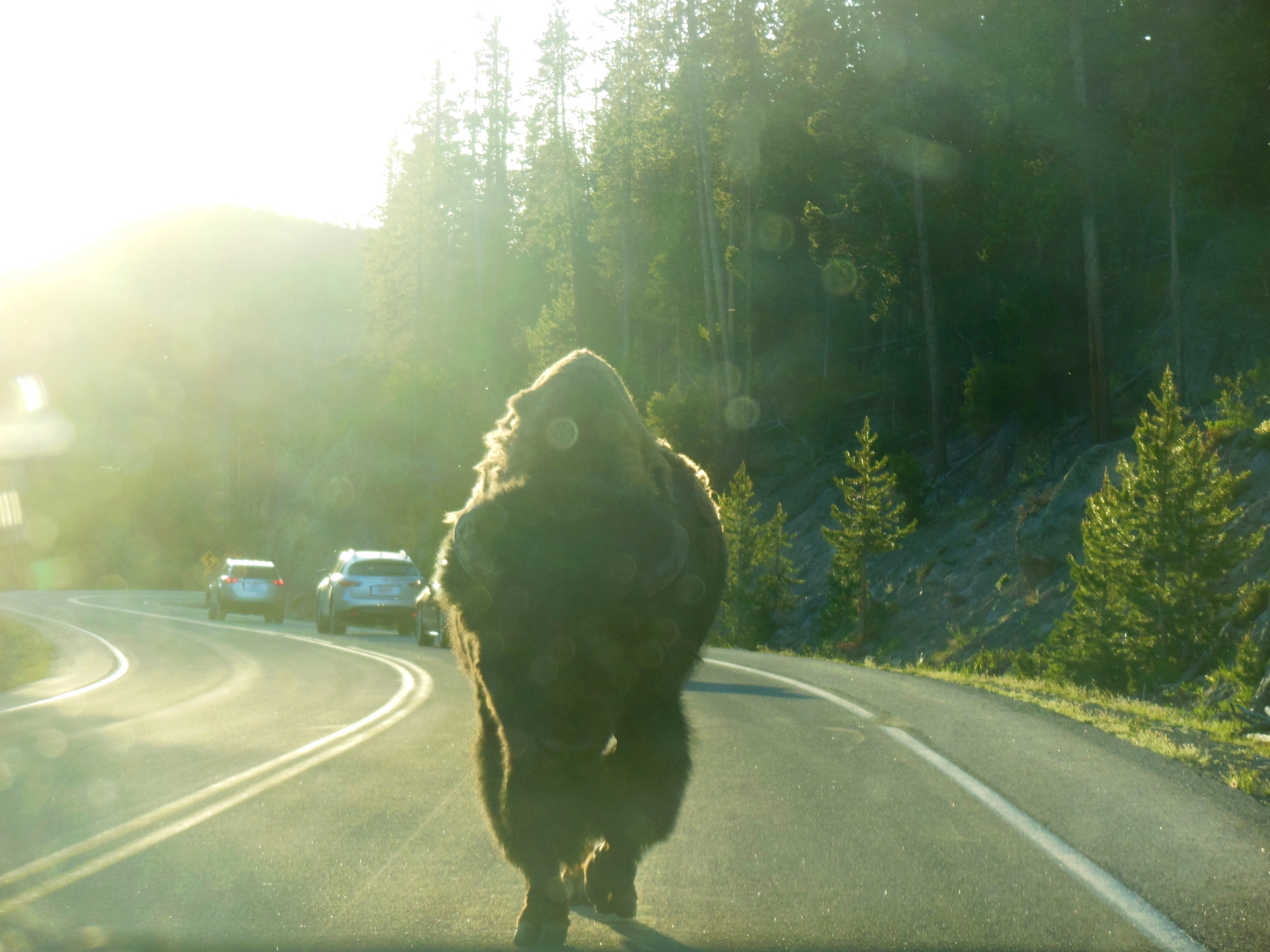 As we continued north to Yellowstone, the air became colder. We were climbing again from Jackson’s 4500 feet in elevation to 7500 feet for Yellowstone. (All elevations approximate and vary from location to location.) The skies became cloudy. We were back in mountains and forests, rather than looking at them from the valley.